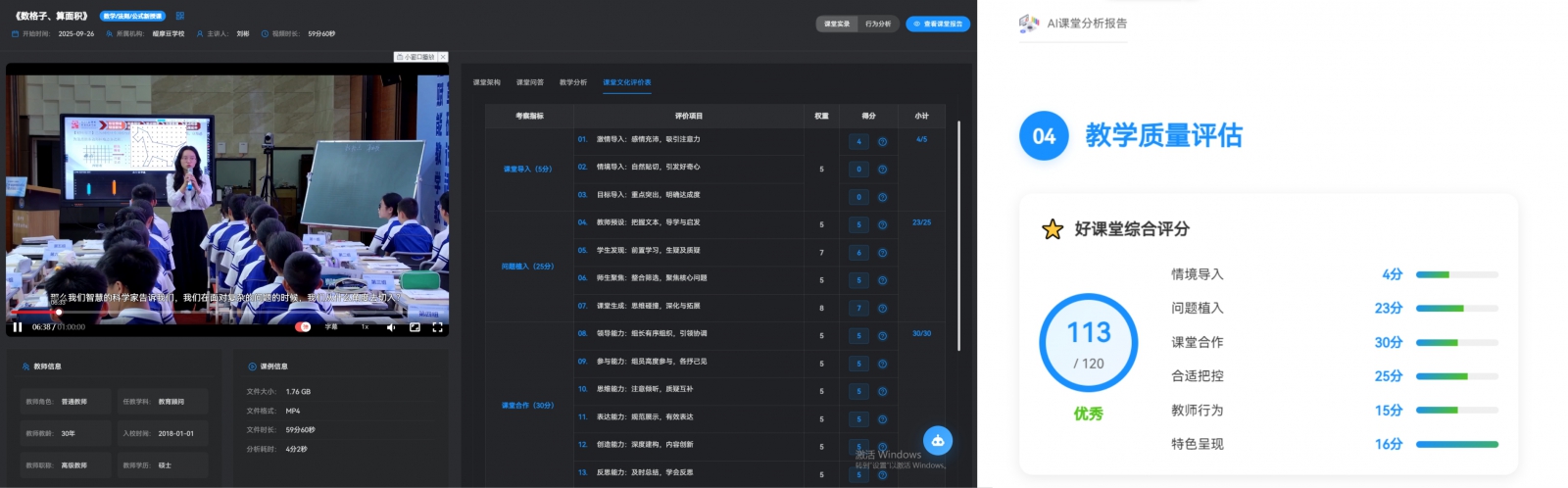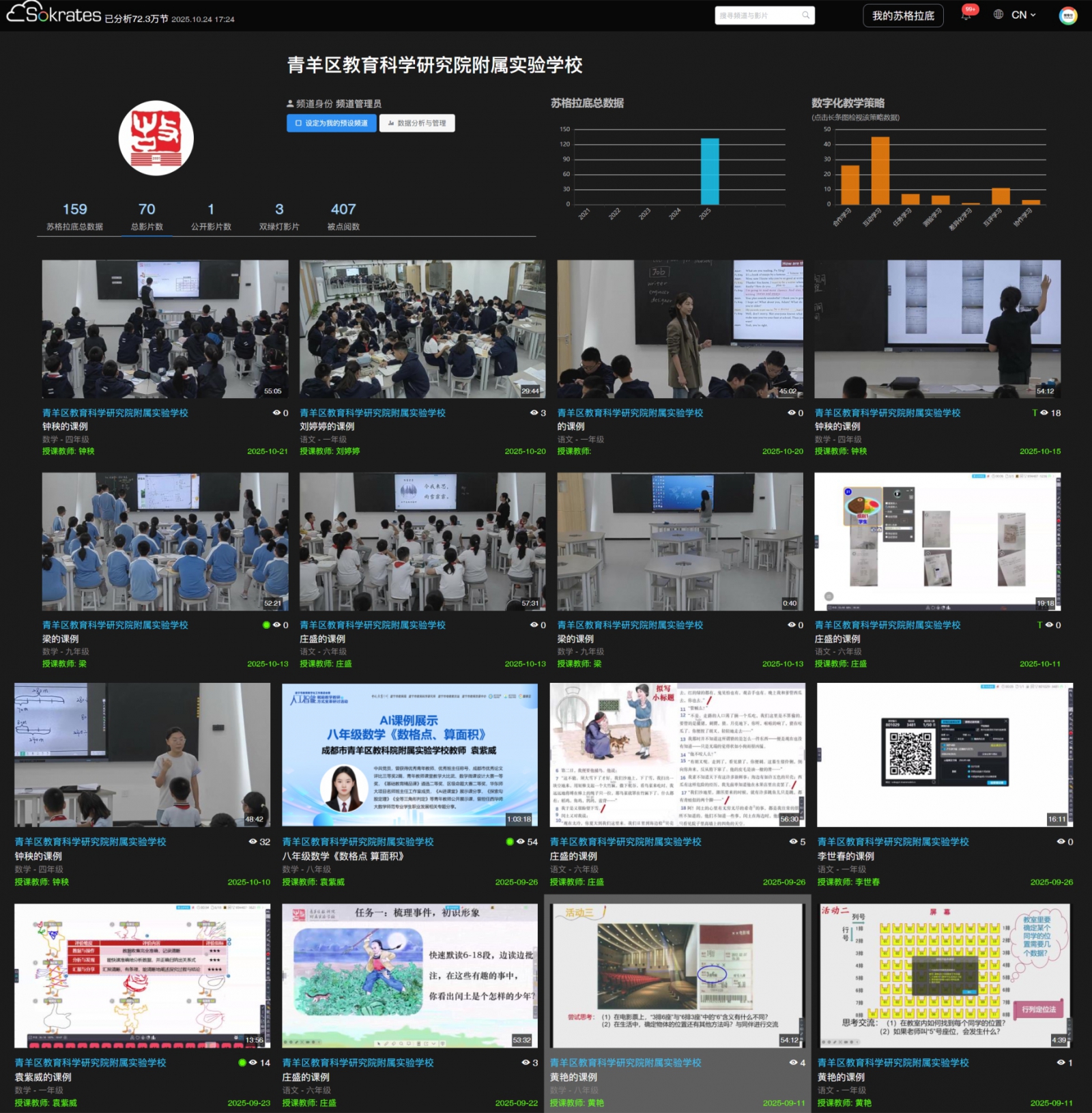 在智慧教研方面,學校構(gòu)建“問題聚焦一量表開發(fā)一課例實證”三階模型,形成閉環(huán)教研流程。開設(shè)蘇格拉底專屬課例頻道,通過智慧教研中心對教學過程進行細致解構(gòu),雙軌采集師生的課堂行為數(shù)據(jù),精準定位課堂問題,開發(fā)針對性量表,并以課例實證檢驗教研成效,同時,依托蘇格拉底平臺,AI課堂分析,整合數(shù)據(jù)資源,為加速教師專業(yè)成長提供精準教研支持,推動教研模式向數(shù)據(jù)驅(qū)動、精準賦能方向轉(zhuǎn)變。