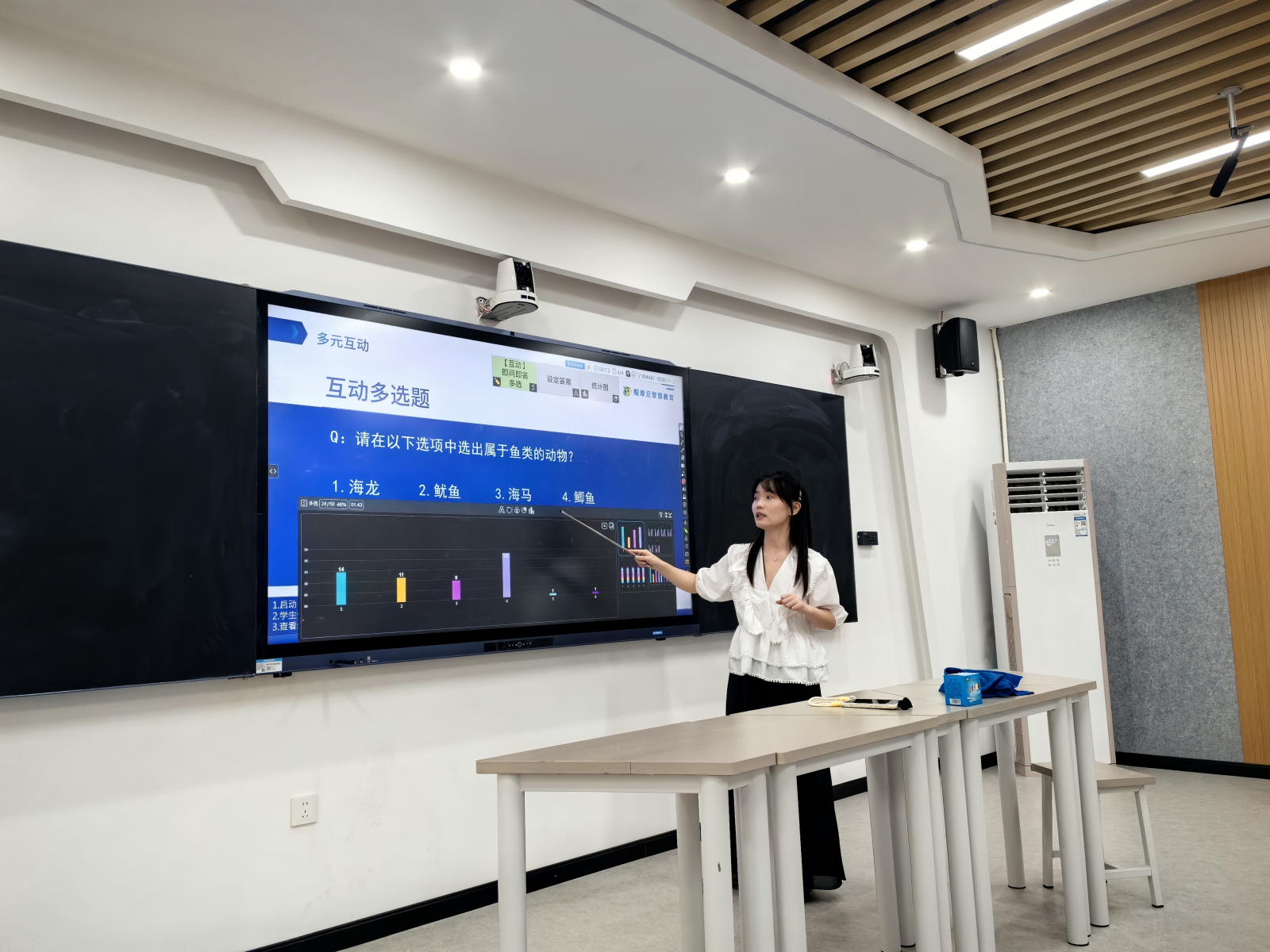 學校在智慧教學領(lǐng)域積極創(chuàng)新,構(gòu)建HiTeach智慧教學系統(tǒng),通過數(shù)字技術(shù)對教學進行全過程賦能,采集學生的課堂反饋數(shù)據(jù),即時掌握學情,為課堂改進提供明確靶點。學校以典型課例為依托,組織校級智慧課堂教學比賽,打磨優(yōu)質(zhì)教學案例,推動智慧教學走應(yīng)常態(tài)化,助力教師提升教學效能。