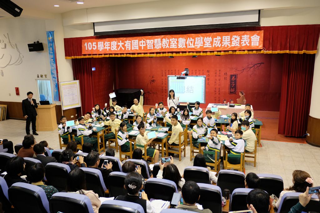 2017年4月桃園市智慧學堂成果發(fā)表會在大有國中舉辦,多位教師展示了智慧課堂公開課