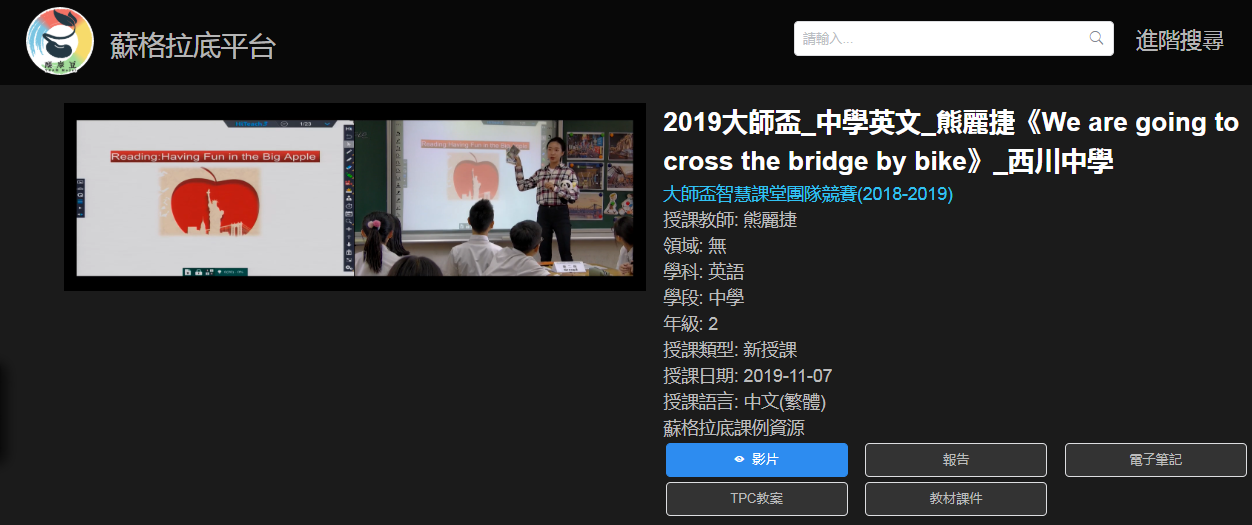 登入蘇格拉底平臺觀看TPC教案、蘇格拉底影片、報告、教材課件、電子筆記