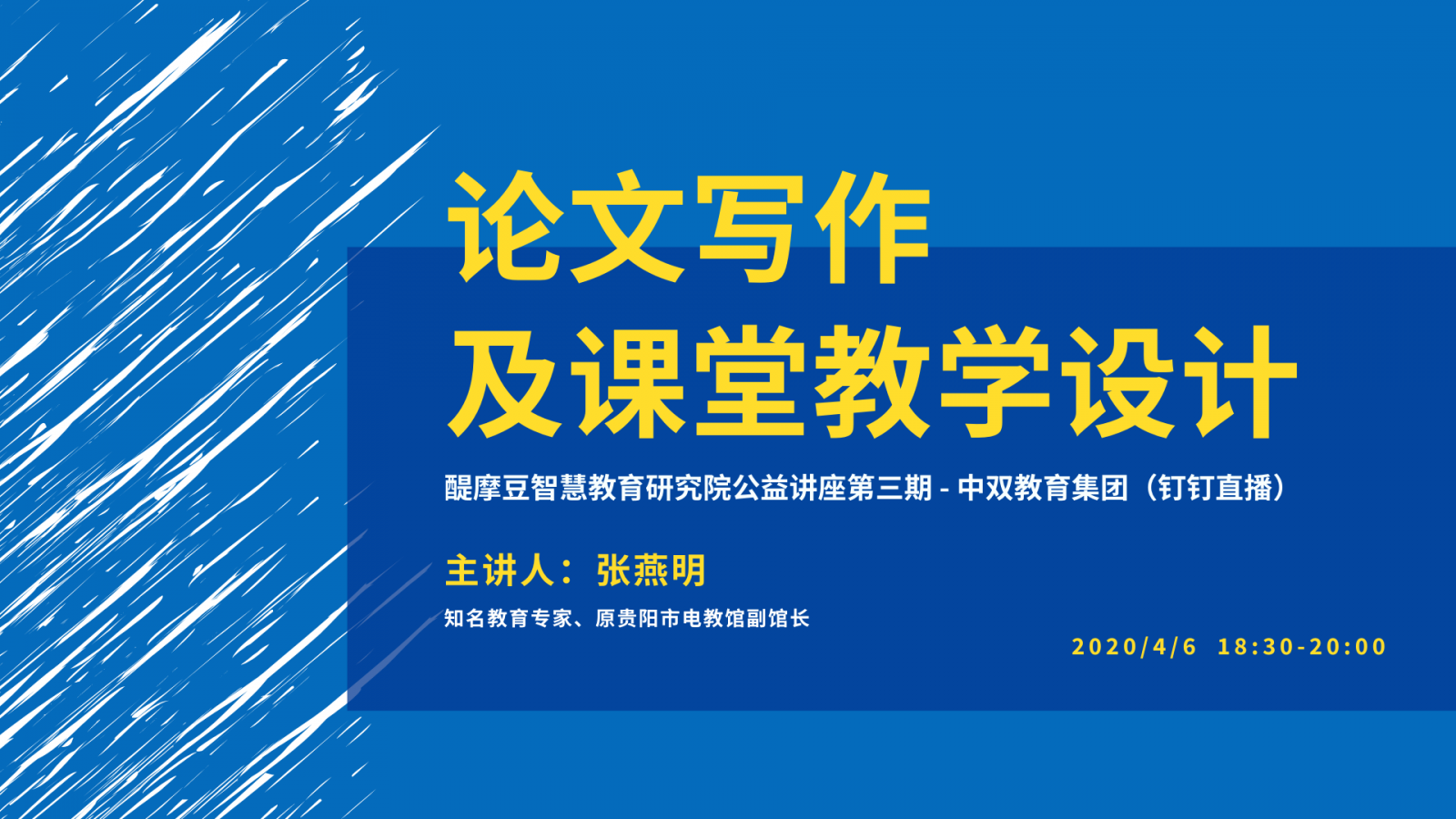 張燕明專家講座 2020年,由于疫情的影響,醍摩豆智慧教育研究院從3月26日,正式舉辦線上公益講座。