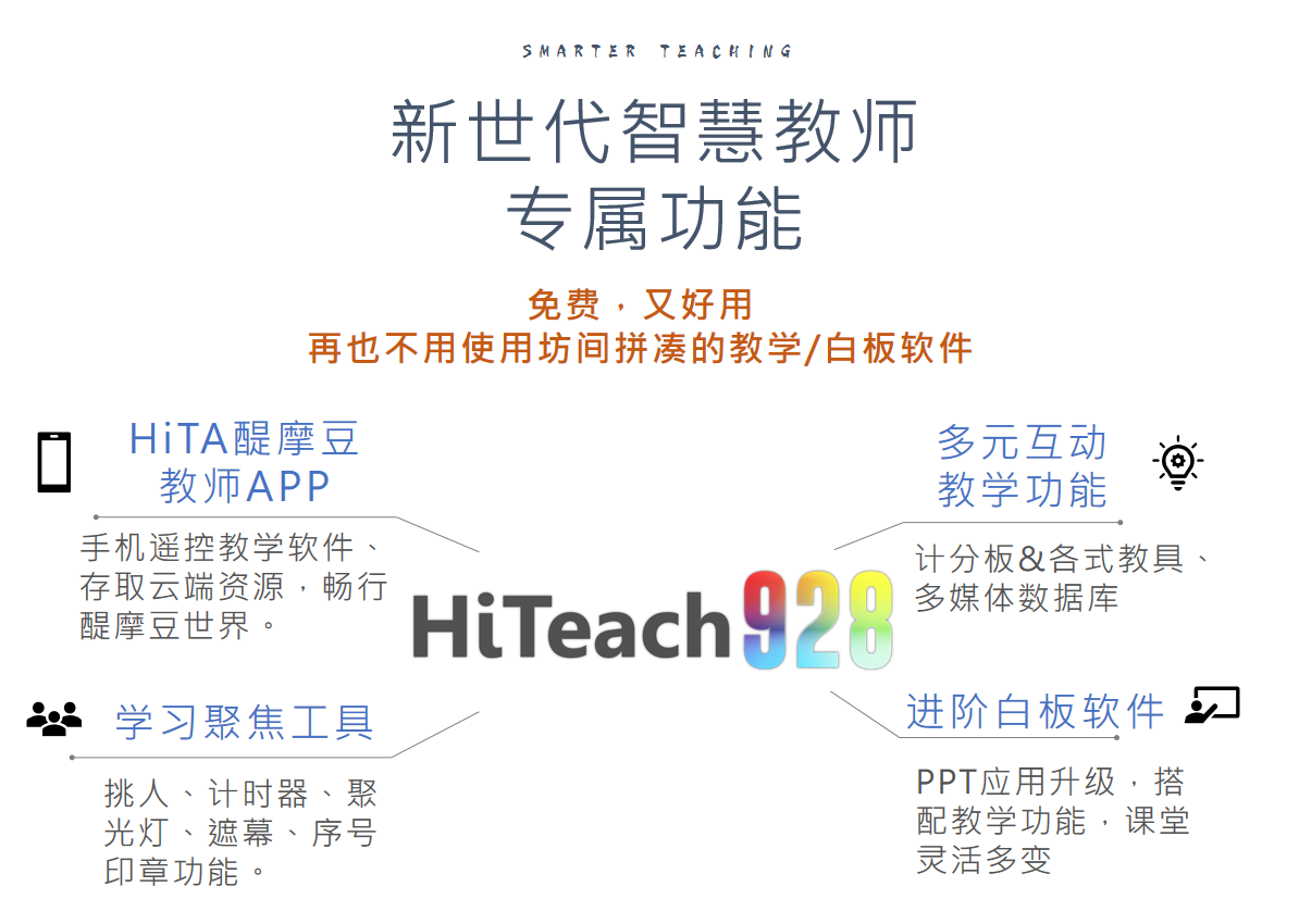 ※ 申明事項:HiTeach 928是HiTeach 5的教育公益授權(quán),為醍摩豆公益推廣智慧教育之用,歡迎所有教師下載使用。