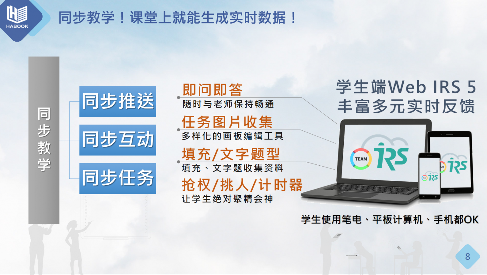 學生端連線的界面是Web IRS,畫面會隨著教師的任務,自動切換,任務跟隨!讓學生專注于課堂活動!