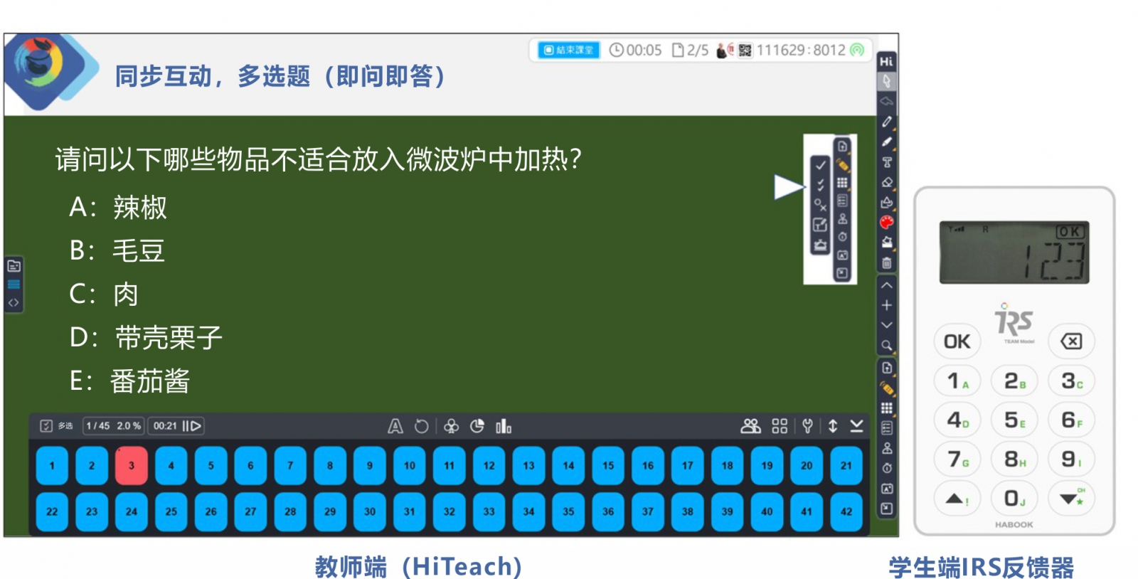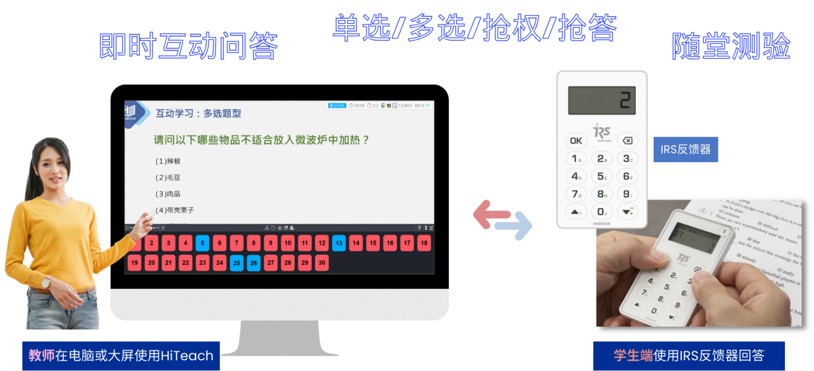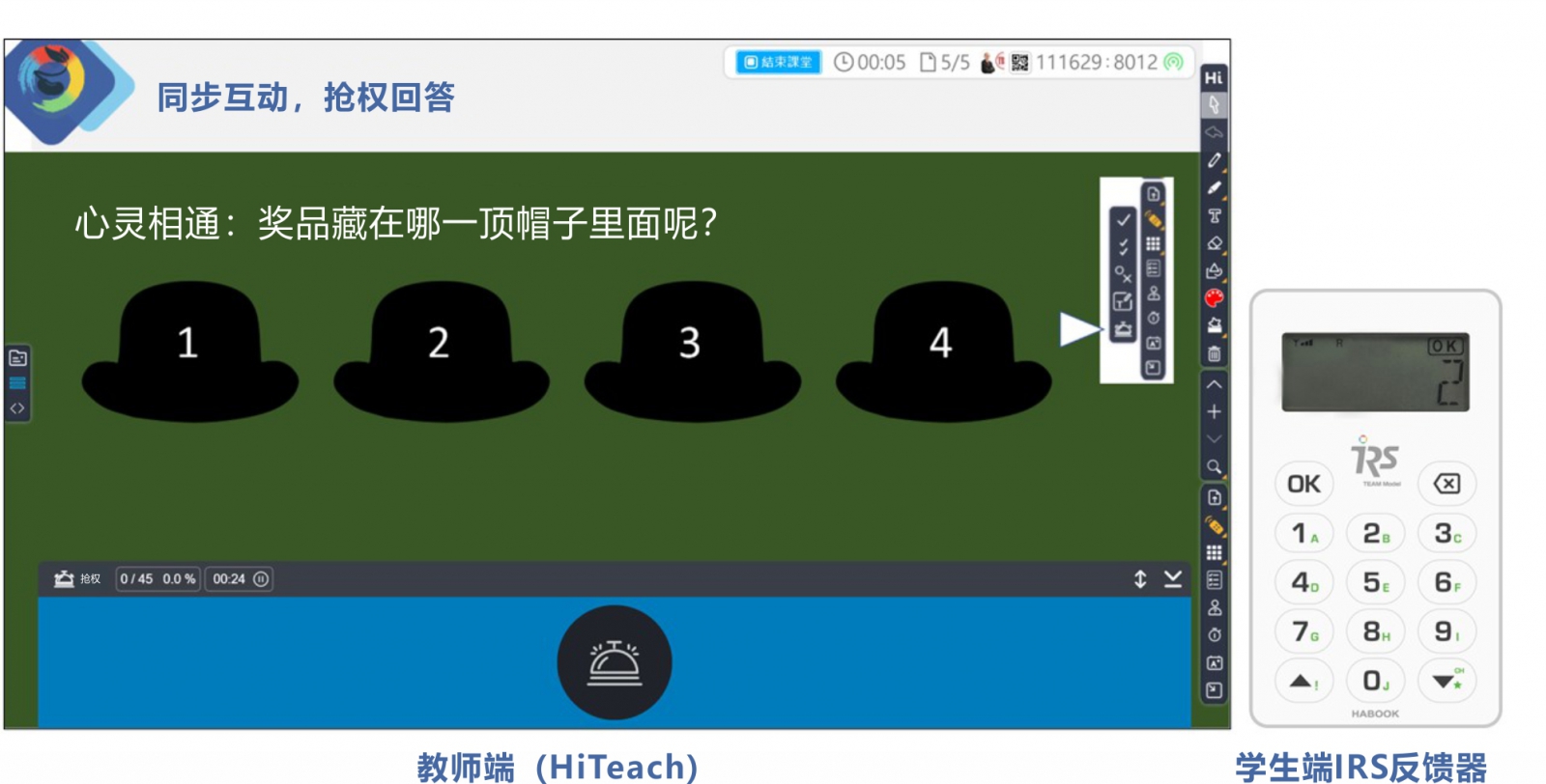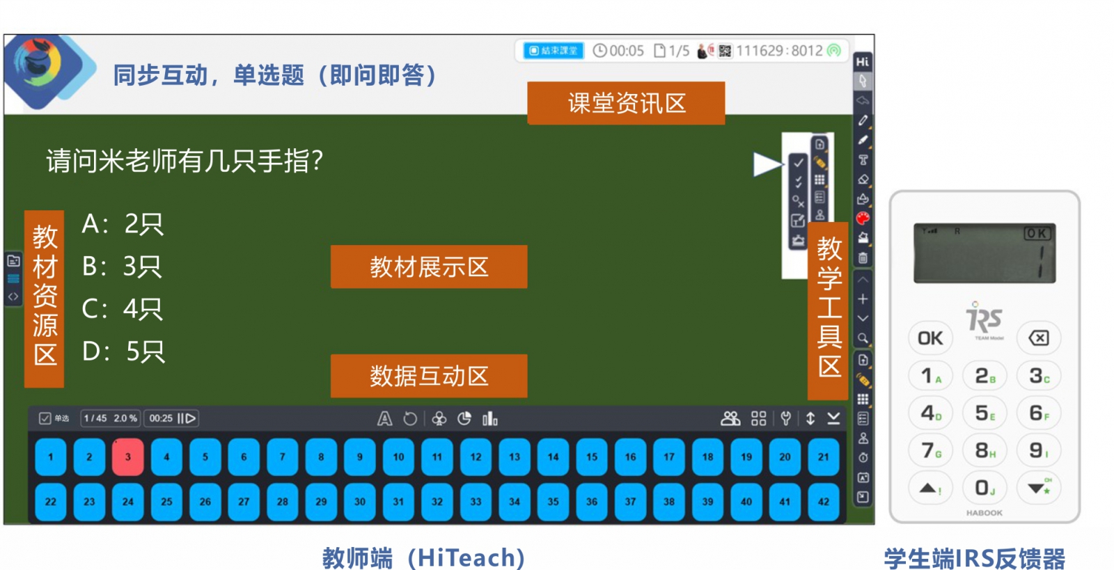 學(xué)生端-上課時,人手一支IRS實時反饋裝置,配合教師的問題進(jìn)行回答。