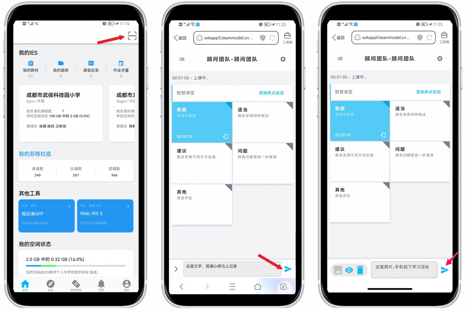 一般進(jìn)行公開觀課時(shí),觀課者是采用紙本的觀議課紀(jì)錄表,或者觀課筆記本,將觀察到的教學(xué)過程重點(diǎn)記錄在紙本上。采用本方案的數(shù)字化觀議課方式,觀課專家、教師團(tuán)隊(duì)將使用議課app來記錄重點(diǎn),不僅僅是文字記錄,還有時(shí)間軸的概念,標(biāo)記時(shí)間后,拍下當(dāng)時(shí)重點(diǎn)照片、錄音、錄像等多媒體方式都可以,紀(jì)錄方式更多元且對(duì)應(yīng)到課堂進(jìn)行的時(shí)間點(diǎn)。