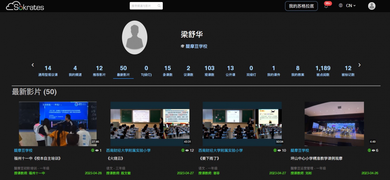 蘇格拉底專屬課例頻道是醍摩豆云平臺(tái)所提供的經(jīng)典影片存放服務(wù),提供校內(nèi)成員在線公開觀議課,以及典藏學(xué)校經(jīng)典課例。每一所學(xué)校有各自獨(dú)立的學(xué)校專屬課例頻道,以確保校內(nèi)觀議課數(shù)據(jù)安全性。
