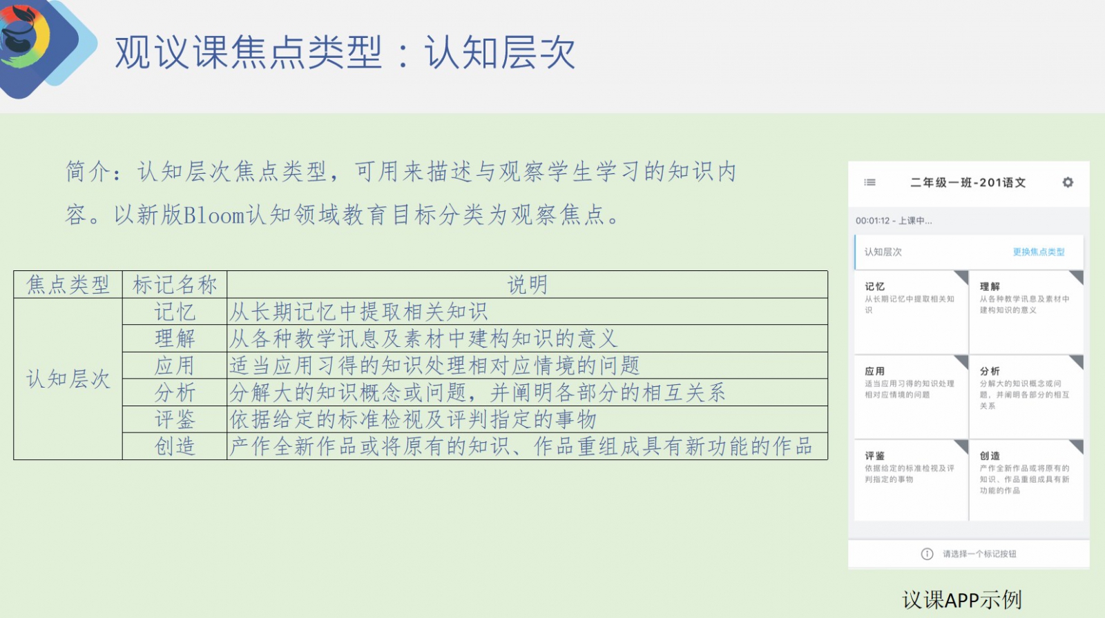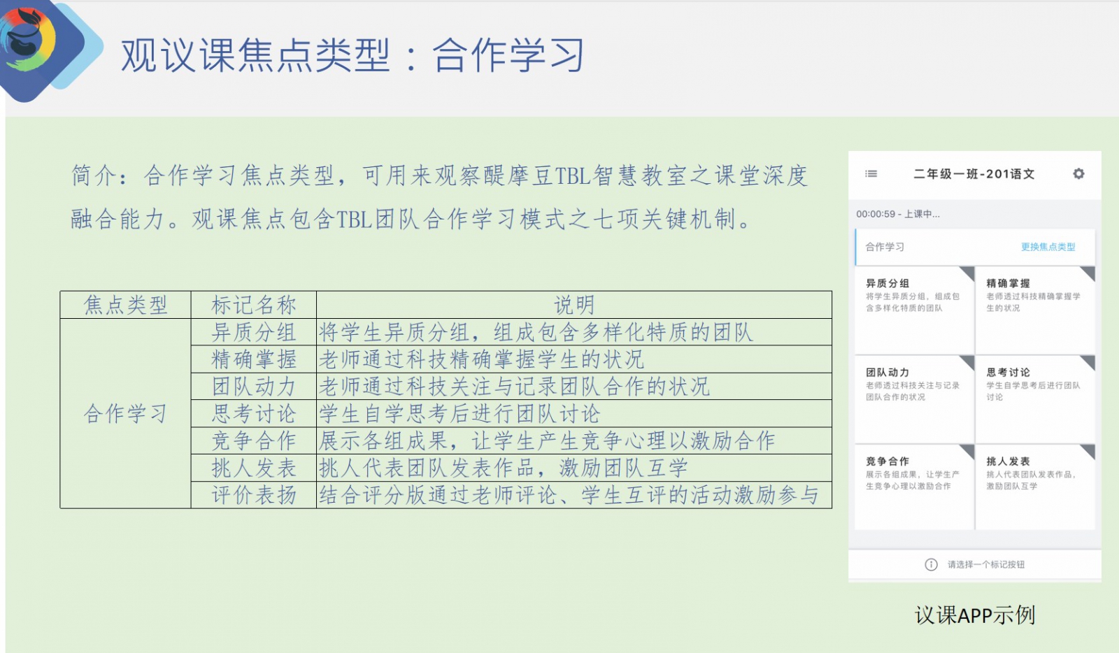 數(shù)字化觀議課時(shí),觀課專家或教師團(tuán)隊(duì)可使用蘇格拉底議課APP進(jìn)行觀課數(shù)據(jù)紀(jì)錄,標(biāo)記關(guān)鍵的時(shí)間點(diǎn),以文字、照片、錄音、錄像方式記錄觀察重點(diǎn)內(nèi)容,不管是手機(jī)、平板或筆記型計(jì)算機(jī)都可以操作。蘇格拉底議課APP內(nèi)建有多種觀議課焦點(diǎn)類型,包括合作學(xué)習(xí)、學(xué)生行為、認(rèn)知層次、學(xué)習(xí)共同體、學(xué)習(xí)共同體_氣氛、學(xué)習(xí)共同體_歷程、學(xué)習(xí)共同體_成果等。此外,學(xué)區(qū)或?qū)W校也可以制定政府層級(jí)或校本的觀議課焦點(diǎn)類型,或由專家或教師個(gè)人自定觀議課焦點(diǎn)類型。