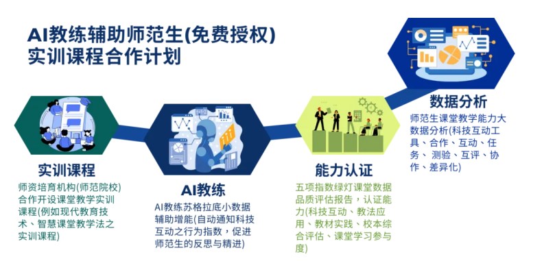 AI教練輔助師范生實(shí)訓(xùn)課程合作計(jì)劃免費(fèi)提供HiTeach智慧教學(xué)系統(tǒng)與AI蘇格拉底教練授權(quán)給師資培育機(jī)構(gòu)師范生,以AI教練輔助實(shí)施「實(shí)訓(xùn)課程」、「AI教練」、「能力認(rèn)證」、「數(shù)據(jù)分析」等, 說明如下: