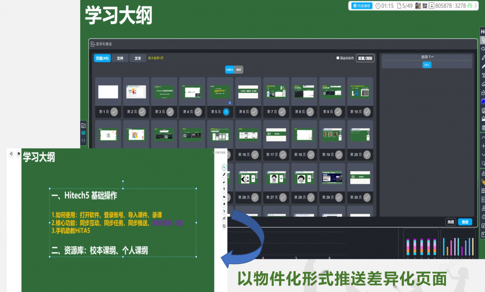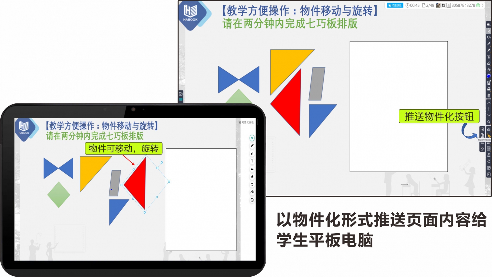 老師端以差異化推送頁(yè)面,學(xué)生可移動(dòng)物件