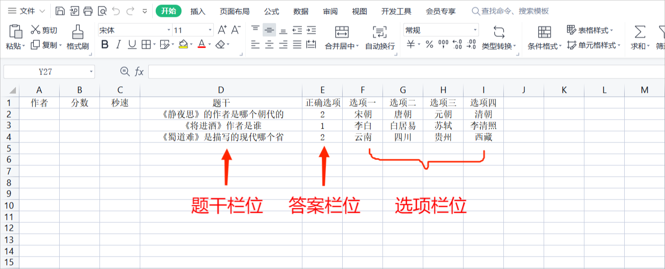 只要依序復制、貼上試題的的內容到范例檔指定的題干欄位、正確選項(答案)欄位、選項欄位,其它欄位則是選填(可不填),編輯完成并存檔之后,即可利用前述相同的方式,應用于Excel隨堂測驗。