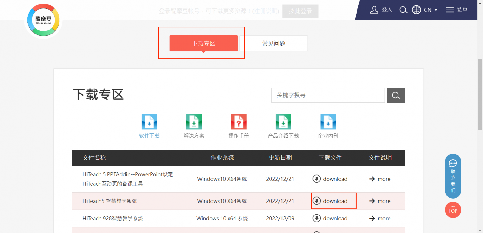 請于下列 HiTeach 5 軟件下載鏈接地址,點擊