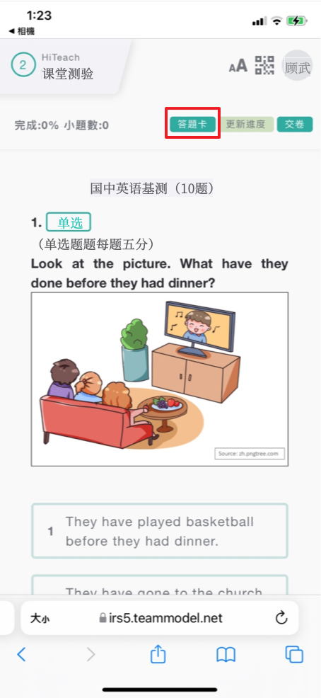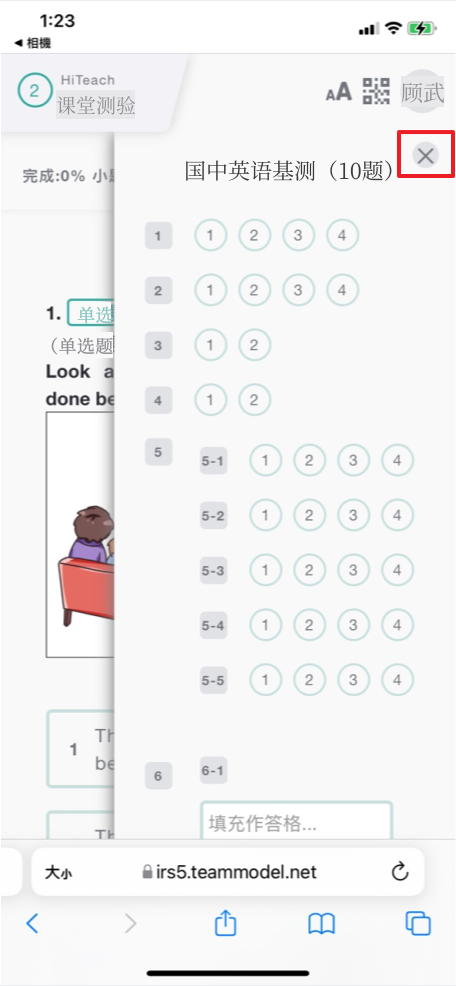 Web IRS 連接主要有兩種方式,學(xué)生端可使用平板或手機(jī)掃描教師端HiTeach 的QRCode(或鄰座同學(xué)Web IRS的QRCode)連接或是通過網(wǎng)頁瀏覽器輸入Web IRS 網(wǎng)址后輸入教室編號、驗(yàn)證碼進(jìn)行連接。