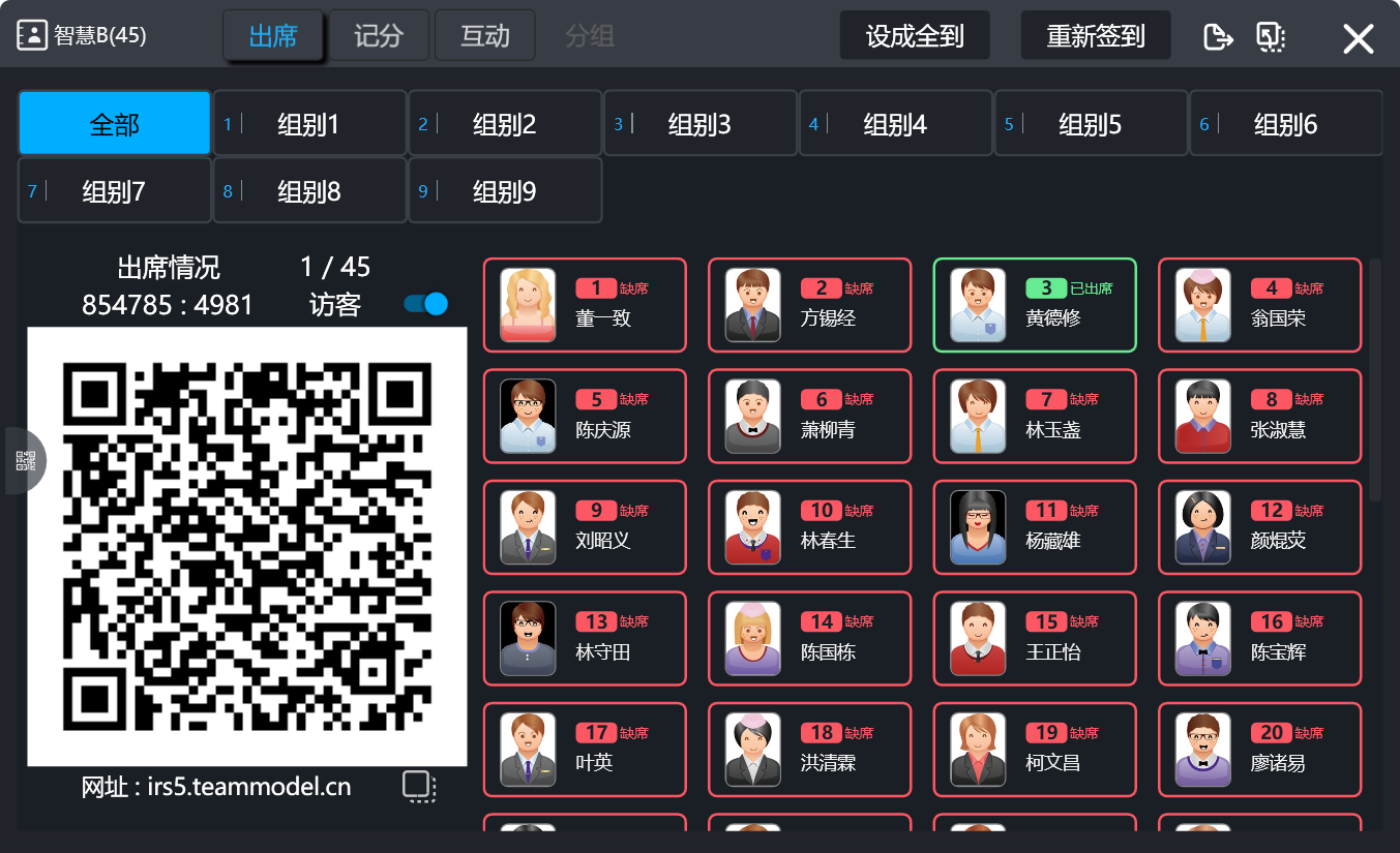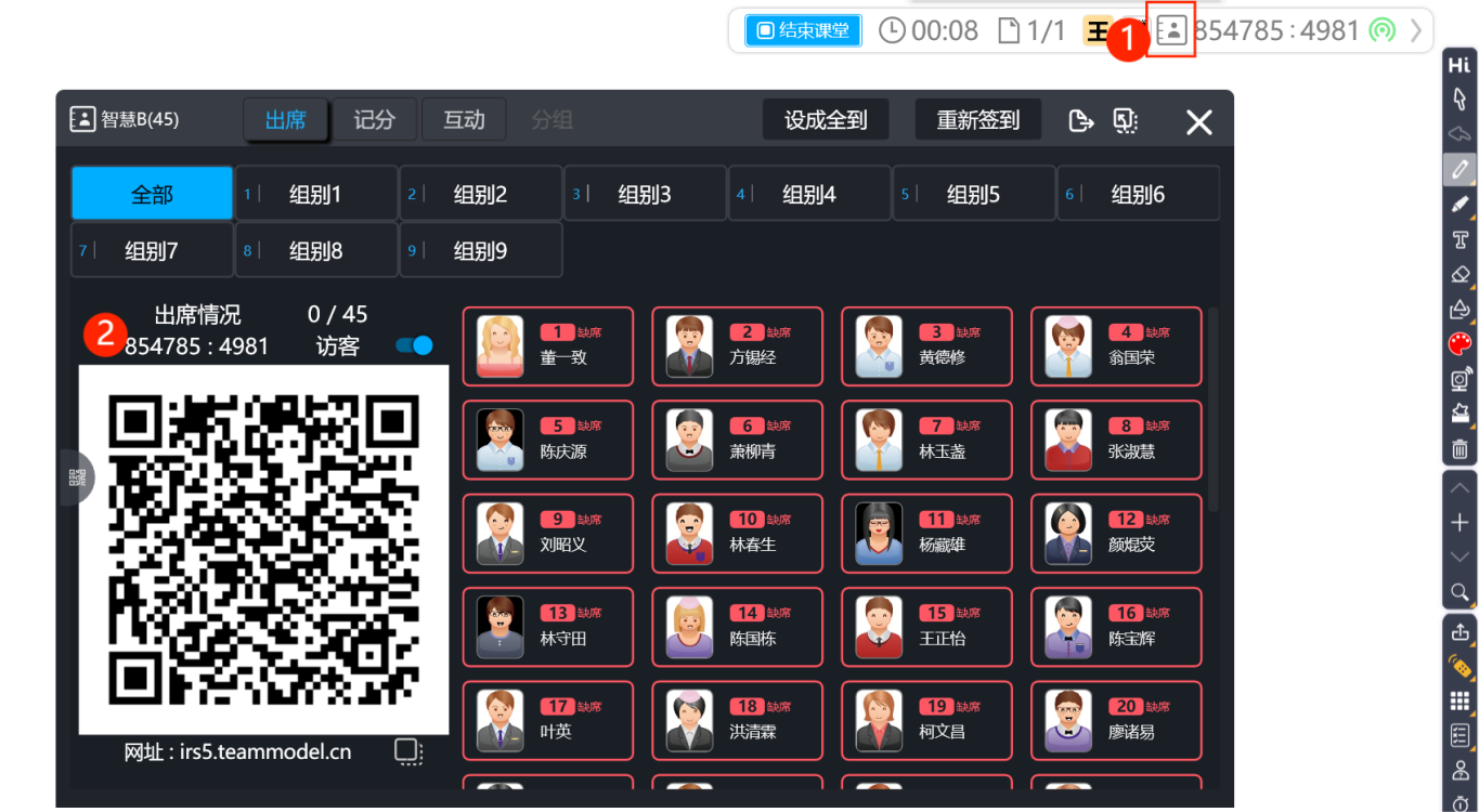 步驟3.學(xué)生若已連線,學(xué)生出席表該名學(xué)生會顯示綠色代表已連線。