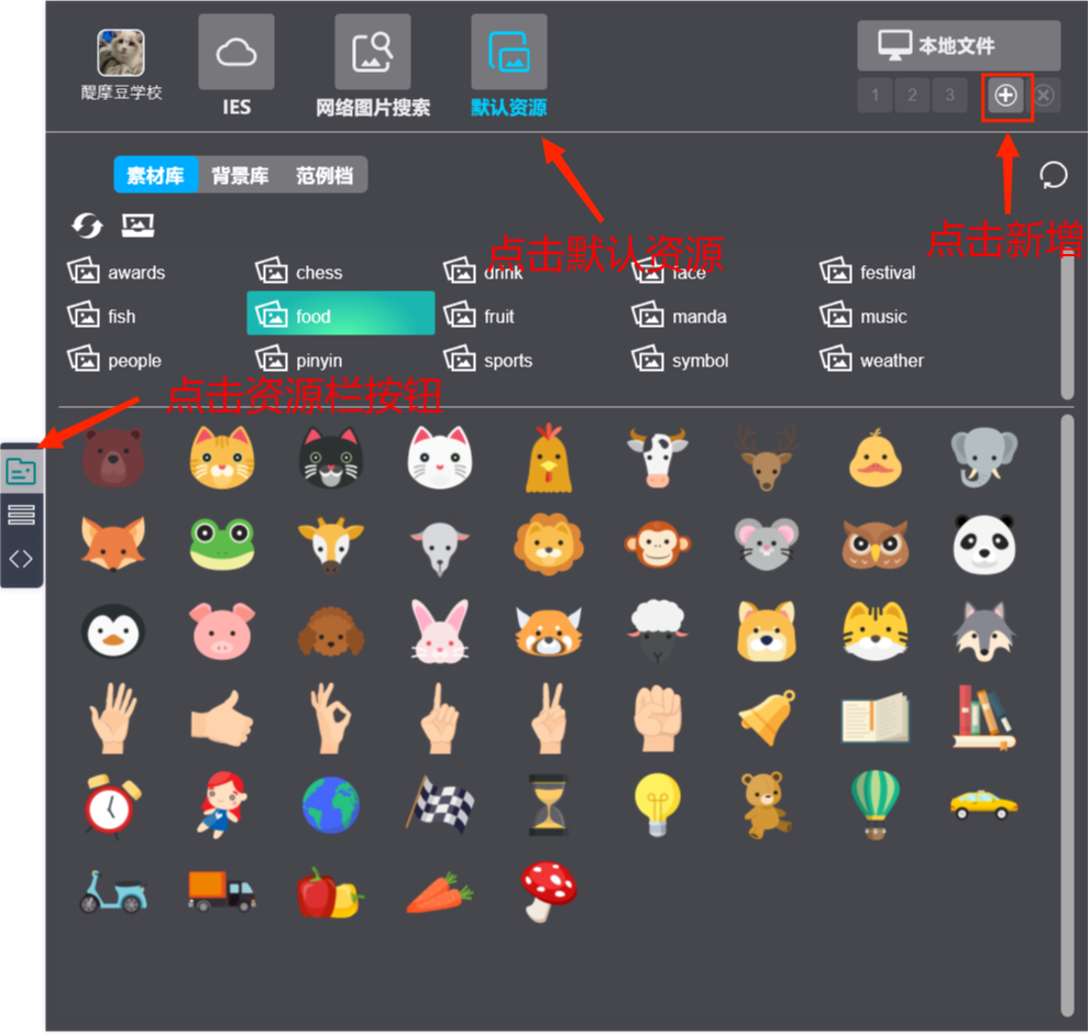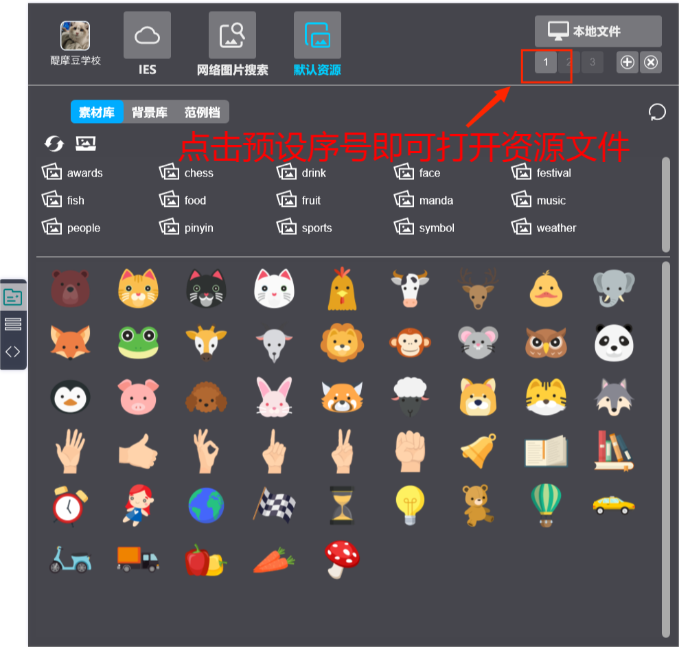 HiTeach提供相當(dāng)多的內(nèi)建資源及素材庫(kù),也內(nèi)建了網(wǎng)絡(luò)圖片搜尋引擎,便于將素材應(yīng)用于教學(xué)活動(dòng)。但是,通常素材永遠(yuǎn)都是不夠的,也不一定符合各學(xué)科、各單元的教學(xué)需求,因此,老師們大都會(huì)有自己備課的教材檔案、多媒體素材,這時(shí)候,利用HiTeach自訂資源資料夾的功能,就可以快速取得自己的教學(xué)材料。