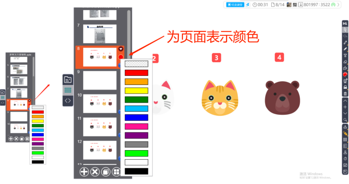 在HiTeach的頁面設(shè)定功能中標(biāo)示顏色