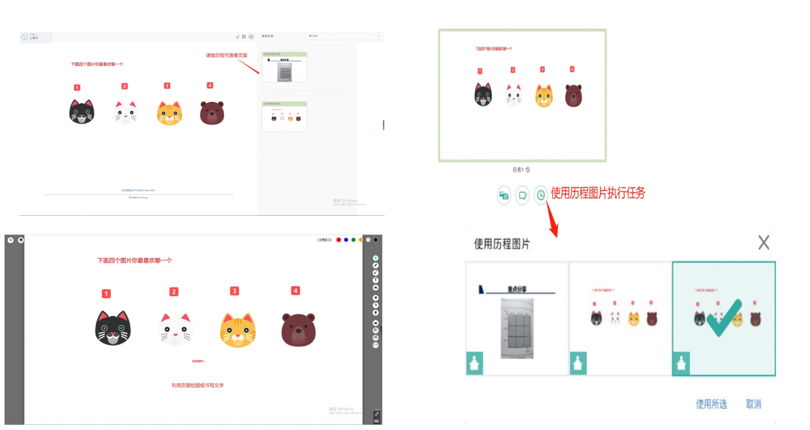 學(xué)生端的操作也很簡(jiǎn)單,可以從課堂歷程區(qū)檢視教師推送的頁面,點(diǎn)選要執(zhí)行的頁面后,就會(huì)開啟畫板,就能夠在上面劃記、輸入文字、插入圖片等,然后按下左上角的紙飛機(jī)圖示即可送出。