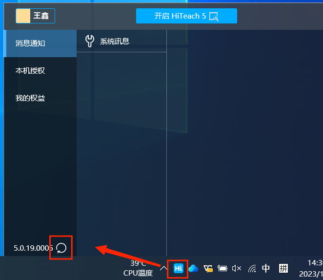 檢查更新的圖標(biāo),建議您由Windows 控制臺(tái)將 HiTeach 5 解除安裝后,重新于下列相關(guān)鏈接提供的 HiTeach 5 下載點(diǎn),下載進(jìn)行安裝。 (HiTeach在相同的大版本下,不定期推出的優(yōu)化小改版是免費(fèi)更新的,請(qǐng)多加利用! )