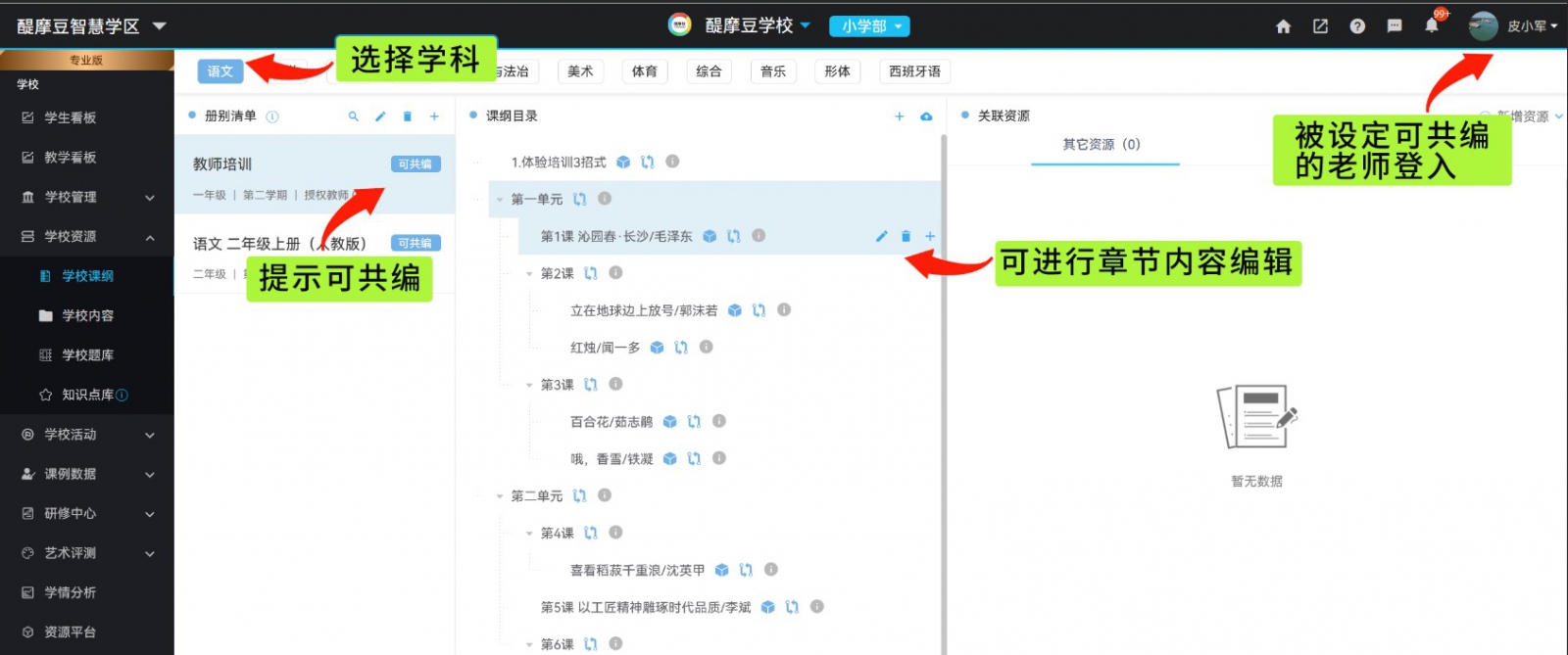 •學(xué)校管理的學(xué)校課綱編輯管理權(quán)限