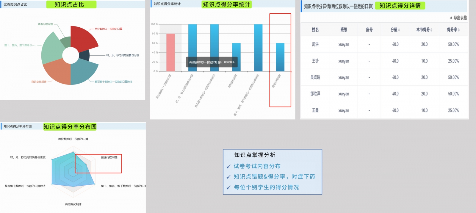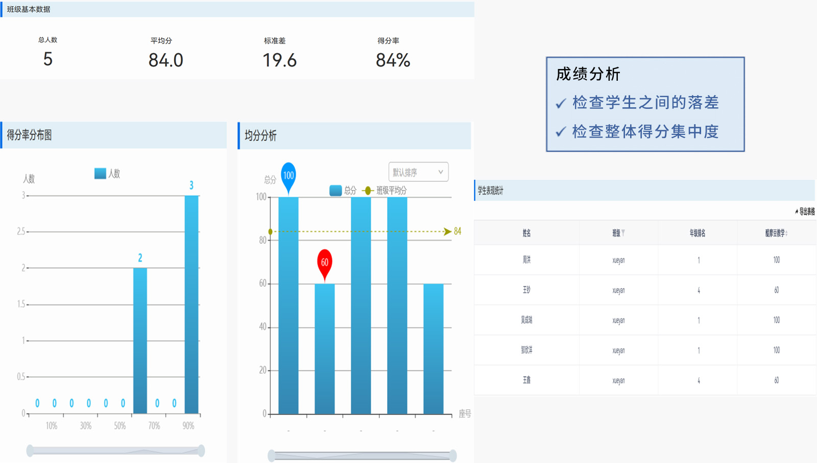 成績分析-班平均/平均分析/得分率分布/排名