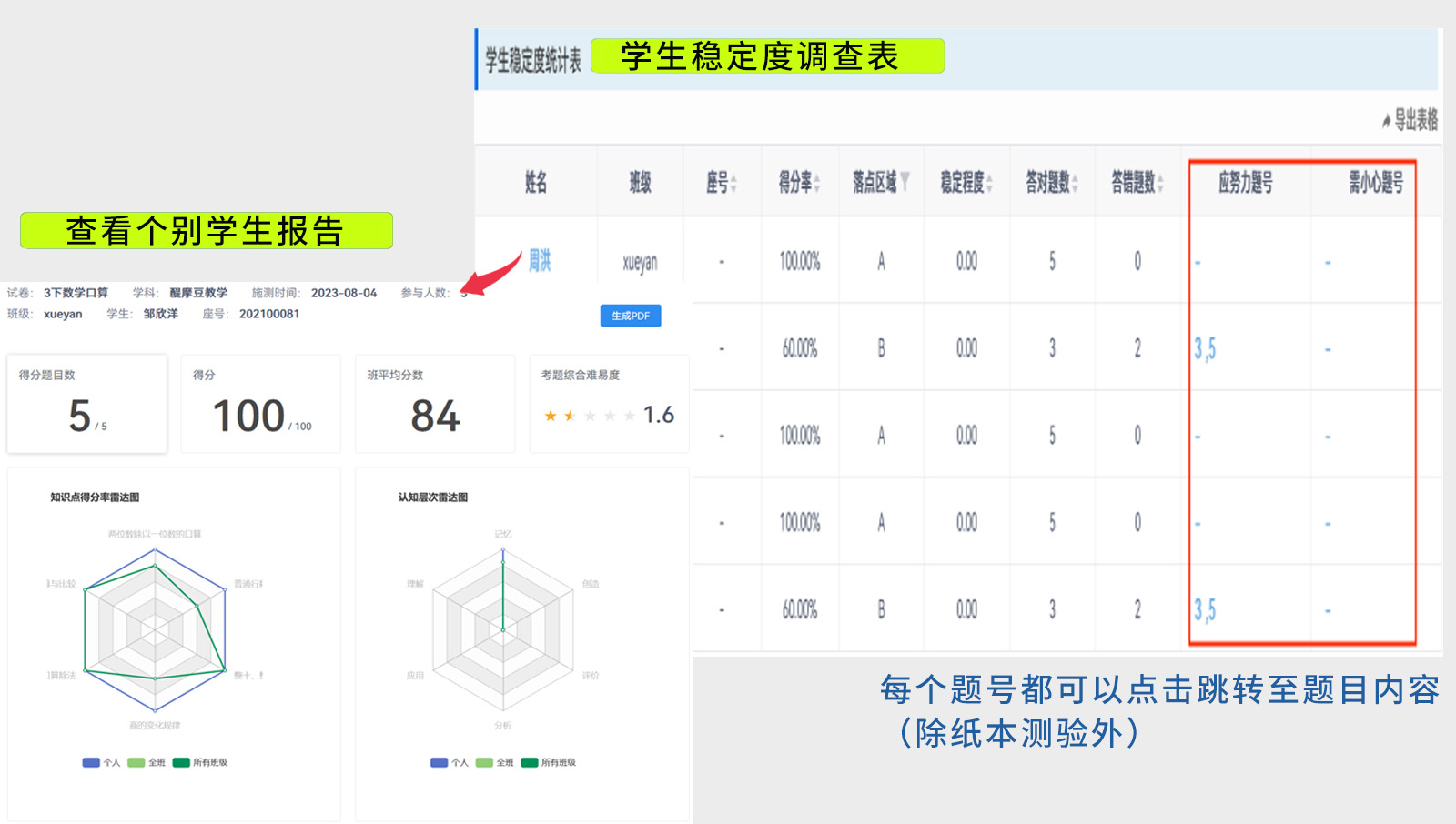 每一位學(xué)生都可以查看自己個(gè)人的專屬診斷報(bào)告。