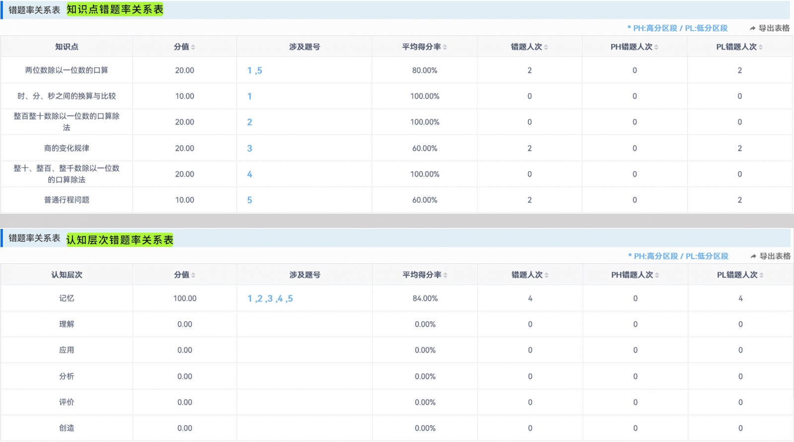 ?知識點(diǎn)/認(rèn)知層次掌握分析