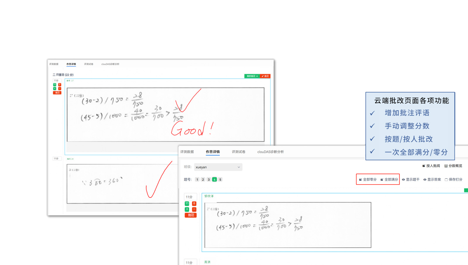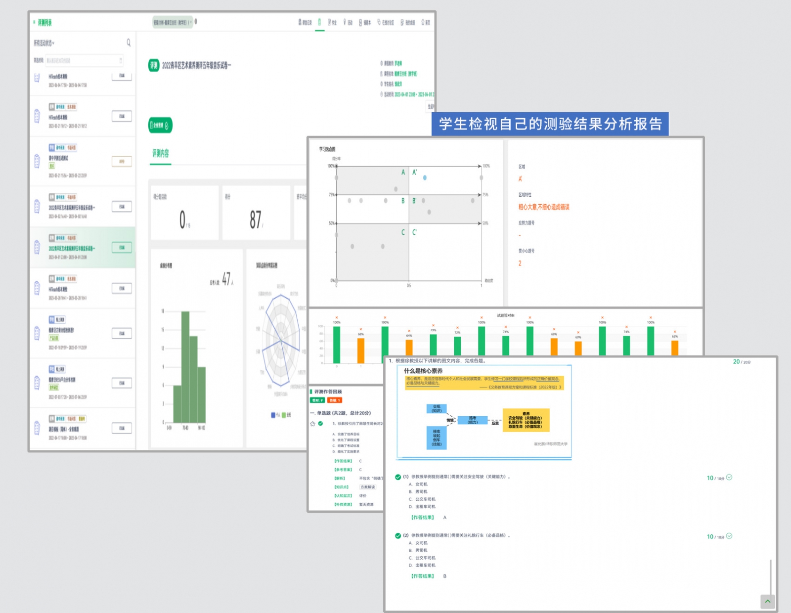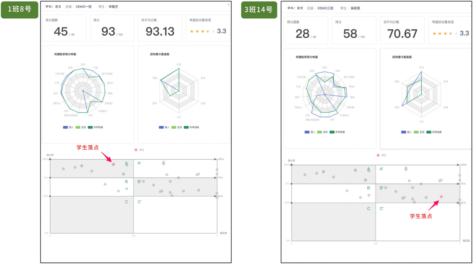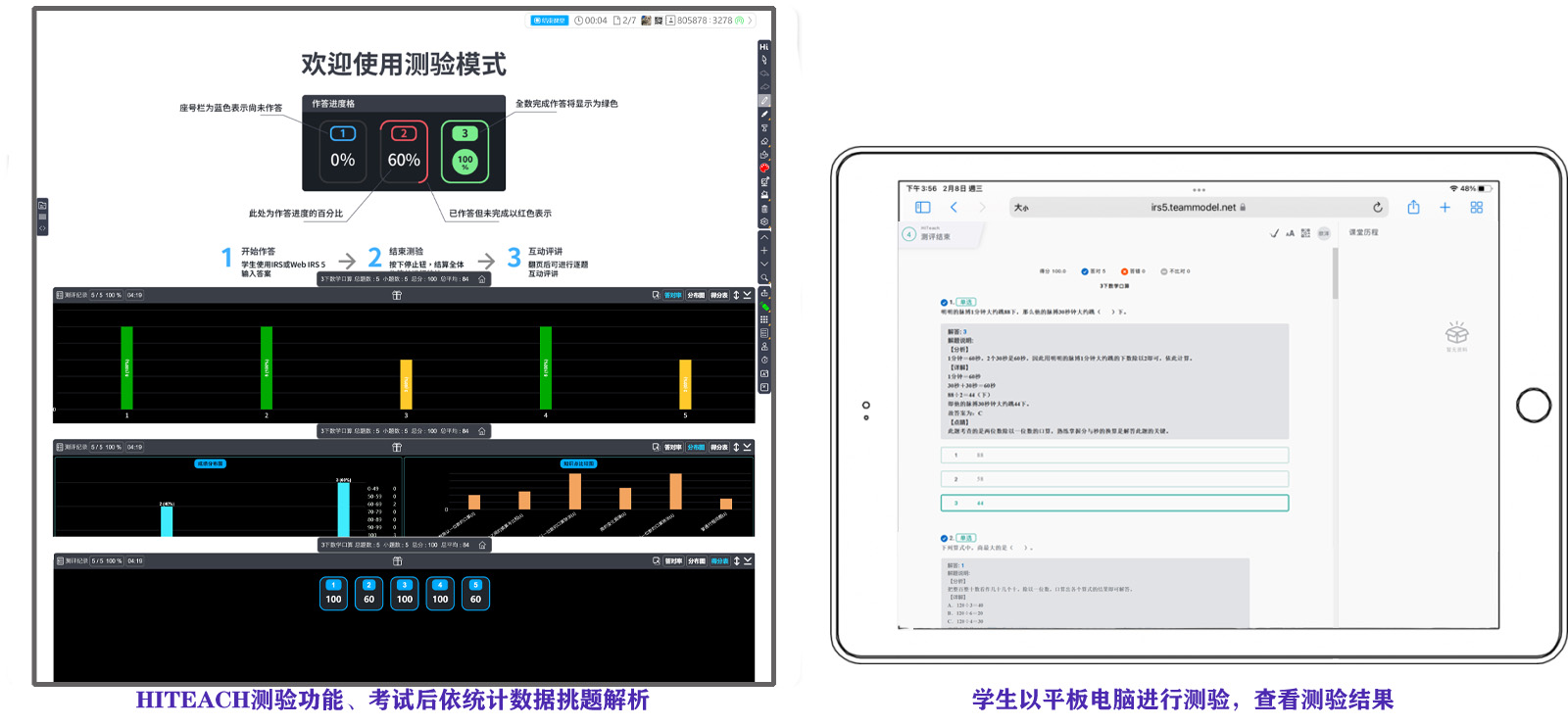 老師馬上知道檢討考卷的重點(diǎn)!而學(xué)生端則能馬上看到個(gè)人結(jié)果及解析。