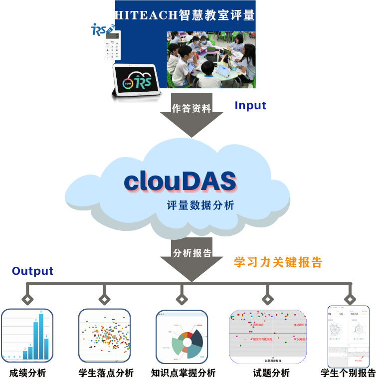 由于生生用平板或IRS反饋器的智慧教室環(huán)境愈來越普及,ADAS運(yùn)算引擎也被直接應(yīng)用到HiTeach的測驗(yàn)功能中,即日起推出HiTeach可附加增購的clouDAS云端診斷分析服務(wù)(cloud Diagnostic Analysis Service)模塊(簡稱clouDAS診斷分析模塊),提供學(xué)習(xí)診斷分析的應(yīng)用功能。