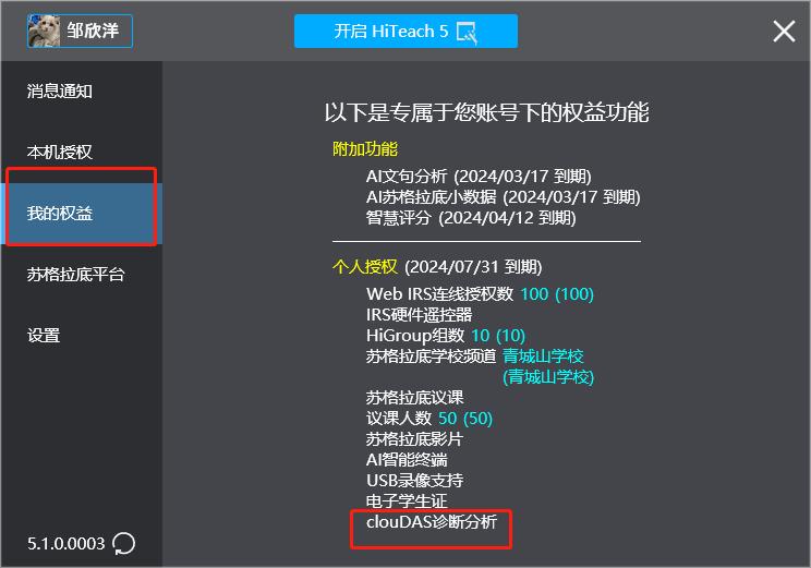 clouDAS診斷分析模塊的授權(quán)是跟著HiTeach 5授權(quán)的選購項(xiàng)目,若已經(jīng)有HiTeach 5專業(yè)版的授權(quán),則可增購clouDAS診斷分析模塊授權(quán)。因此,賬號授權(quán)。