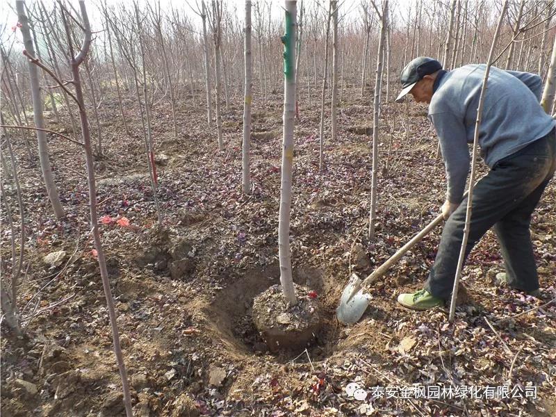 美國紅點紅楓秋栽在秋季落葉后到土壤封凍前(多在11月下旬到12月中旬)栽植。秋季雖然氣溫明顯下降,但地溫卻相對較高,有利于早苗根系傷口的愈合,縮短了緩苗期,提高了成活率,第二年春季早芽萌發(fā)快,發(fā)根早,樹體生長勢強。農(nóng)諺“秋栽先發(fā)根,春栽先發(fā)芽,早種幾個月,生長賽一年”說的就是這個道理。一般來說,秋栽的苗木有幾下特殊要求,如二次枝盡量不剪除,以減少傷口部位失水,少有的傷口部位也應(yīng)該用油漆涂抹以減少水分蒸騰,同時栽種后要在樹干基部堆土或在樹干上用到擦捆綁以預(yù)防凍害等。美國紅楓的秋栽時適當(dāng)早栽比晚栽好。