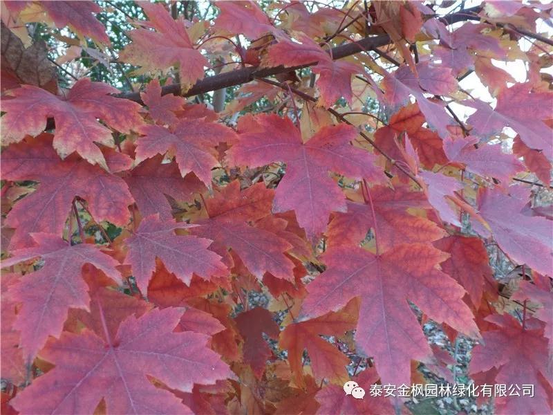 美國(guó)紅楓(學(xué)名:Acer rubrumL. ):原產(chǎn)于美國(guó)東海岸,主要來(lái)自于美國(guó)北部以及加拿大大部分地區(qū)。是落葉大喬木。生長(zhǎng)較快,成年樹高12-18米,冠幅12米,能適應(yīng)多種范圍的土壤類型生長(zhǎng)。春天開花,花紅色。因秋季色彩奪目,樹冠整潔,被廣泛應(yīng)用于公園、小區(qū)街道栽植,既可以園林造景又可以做行道樹,深受人們的喜愛(ài),是近幾年引進(jìn)的美化、綠化城市的理想珍稀樹種之一。也是唯一可以用作行道樹的彩葉樹種。