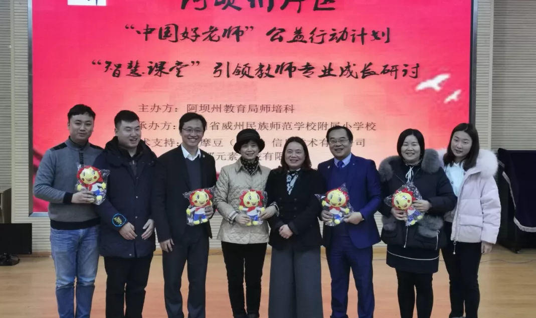 2019年11月28日-29日,阿壩州教育局師培科在威州民族師范學(xué)校附屬小學(xué)校舉辦了阿壩州“中國好老師”公益行動(dòng)計(jì)劃暨“智慧課堂”引領(lǐng)教師專業(yè)成長研討活動(dòng),醍摩豆AI智慧學(xué)校成都師范銀都紫藤小學(xué)黃敏麗校長、醍摩豆(成都)信息技術(shù)有限公司CEO陳權(quán)執(zhí)行長、全球醍摩豆AI智慧學(xué)校聯(lián)盟秘書長劉彬校長、醍摩豆種子教師趙芡老師參加了本次活動(dòng)。