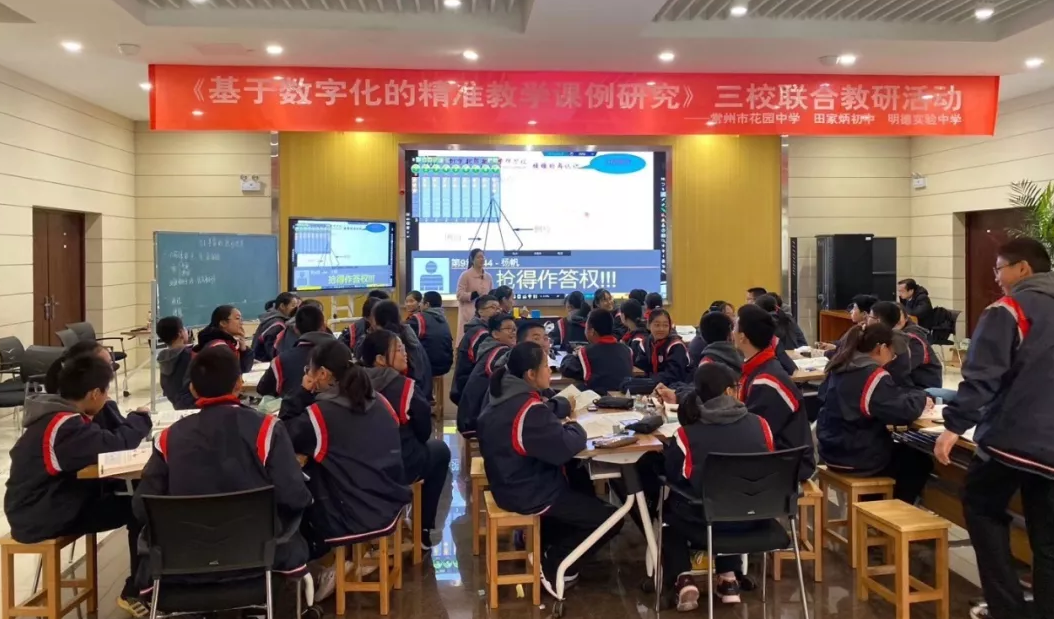 教育教學(xué)信息化,是信息時(shí)代教育教學(xué)改革發(fā)展的必由之路。為了更好的開展基于大數(shù)據(jù)學(xué)習(xí)分析的精準(zhǔn)教學(xué)研究,提升學(xué)校教研水平,促進(jìn)教學(xué)轉(zhuǎn)型和發(fā)展,2019年11月26日,常州市明德實(shí)驗(yàn)中學(xué)開展了全國課題“基于大數(shù)據(jù)學(xué)習(xí)分析的精準(zhǔn)教學(xué)案例研究”“同課異構(gòu)”的課例研討活動,本次活動匯集了常州市明德實(shí)驗(yàn)中學(xué)、常州市花園中學(xué)、常州市田家炳初中等教育同仁,大家齊聚一堂共同教研,共促發(fā)展。