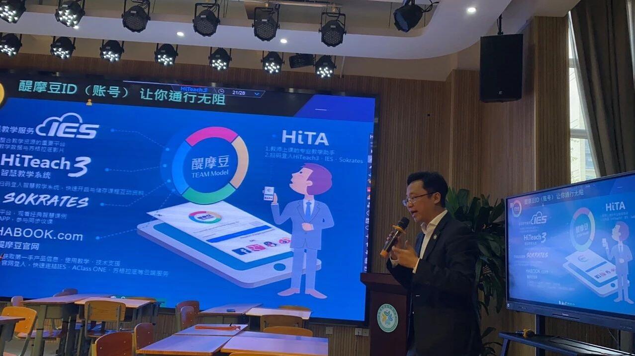 展示課結束后,由醍摩豆(成都)信息技術有限公司陳權執(zhí)行長就“醍摩豆3.0系統(tǒng)下的AI智慧學校”作了分享。陳權執(zhí)行長首先對本次展示課的兩位老師作了“精準、探究、協(xié)作、生本”的高度評價。