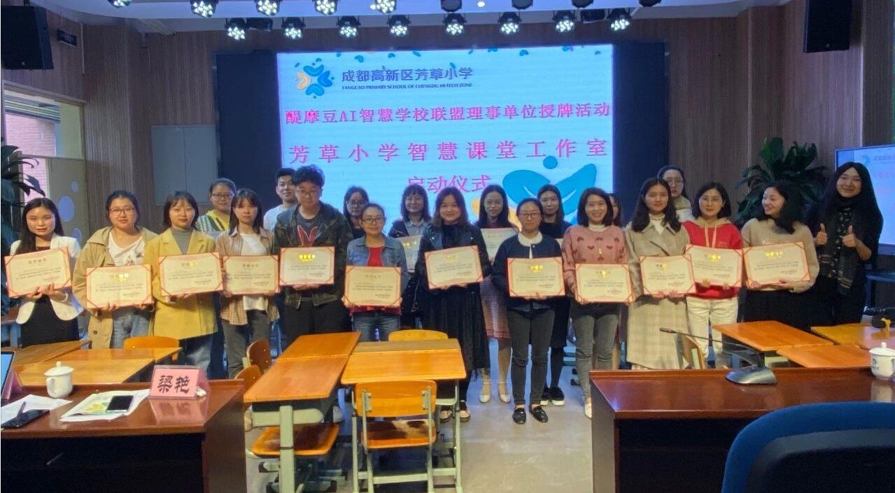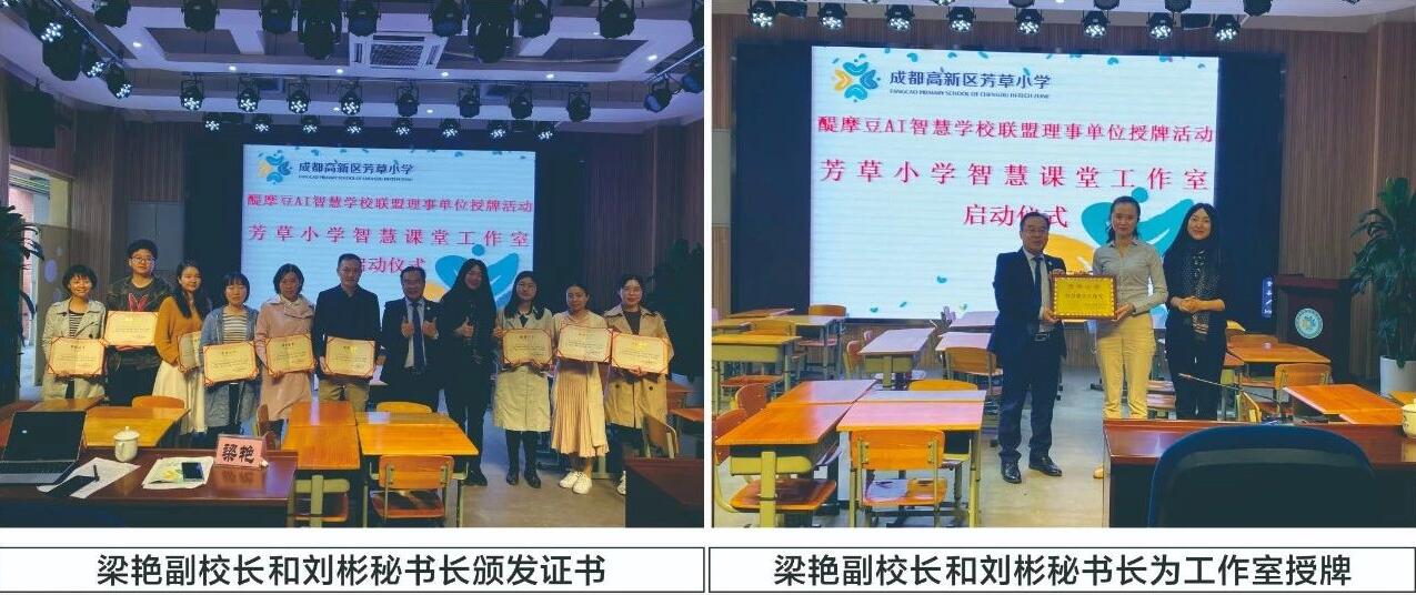 授牌儀式結束后,梁艷副校長和劉彬秘書長為智慧工作室的專家團隊和骨干教師頒發(fā)了榮譽證書,同時為芳草小學智慧課堂工作室授牌。