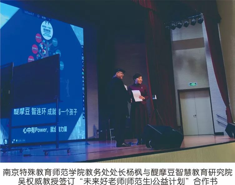 未來好老師(師范生)公益計劃是運用AI智慧教練,通過好平臺、好系統(tǒng)、好教練,加速培育未來好老師的師資人才培育計劃。合作協(xié)議的簽訂,意味著未來好老師(師范生)公益計劃正式啟動,醍摩豆智慧教育研究院將為南京特殊教育師范學院即將走進社會,面臨就業(yè)的師范生提供專家學術(shù)指導、教學互通平臺、教研交流方向。讓學校即將畢業(yè)的師范生在踏入信息化2.0時代背景下的校園時便能贏在起跑線上,能樂于輕松教學,能卓越于他人。南京特殊教育師范學院也將智慧課堂教學納入師范專業(yè)課程并設(shè)置學分考核。