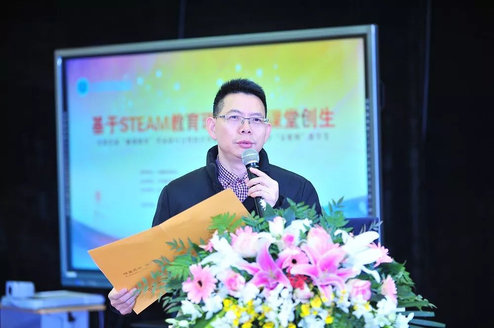 晁志賢副校長(zhǎng)發(fā)言 四川省成都高新區(qū)實(shí)驗(yàn)小學(xué)朱祥烈校長(zhǎng)做了《STEAM教育理念下的教學(xué)創(chuàng)生》專題分享。朱校長(zhǎng)談到了STEM理念下課程創(chuàng)新的四種路徑,即內(nèi)容融創(chuàng)、過(guò)程融創(chuàng)、方法融創(chuàng)和評(píng)價(jià)融創(chuàng)。他還強(qiáng)調(diào),學(xué)校要提升教師STEAM素養(yǎng),引導(dǎo)教師儲(chǔ)備跨學(xué)科教學(xué)的知識(shí)與能力,做一名復(fù)合型教師,提高教學(xué)設(shè)計(jì)與實(shí)施的整合性能力。