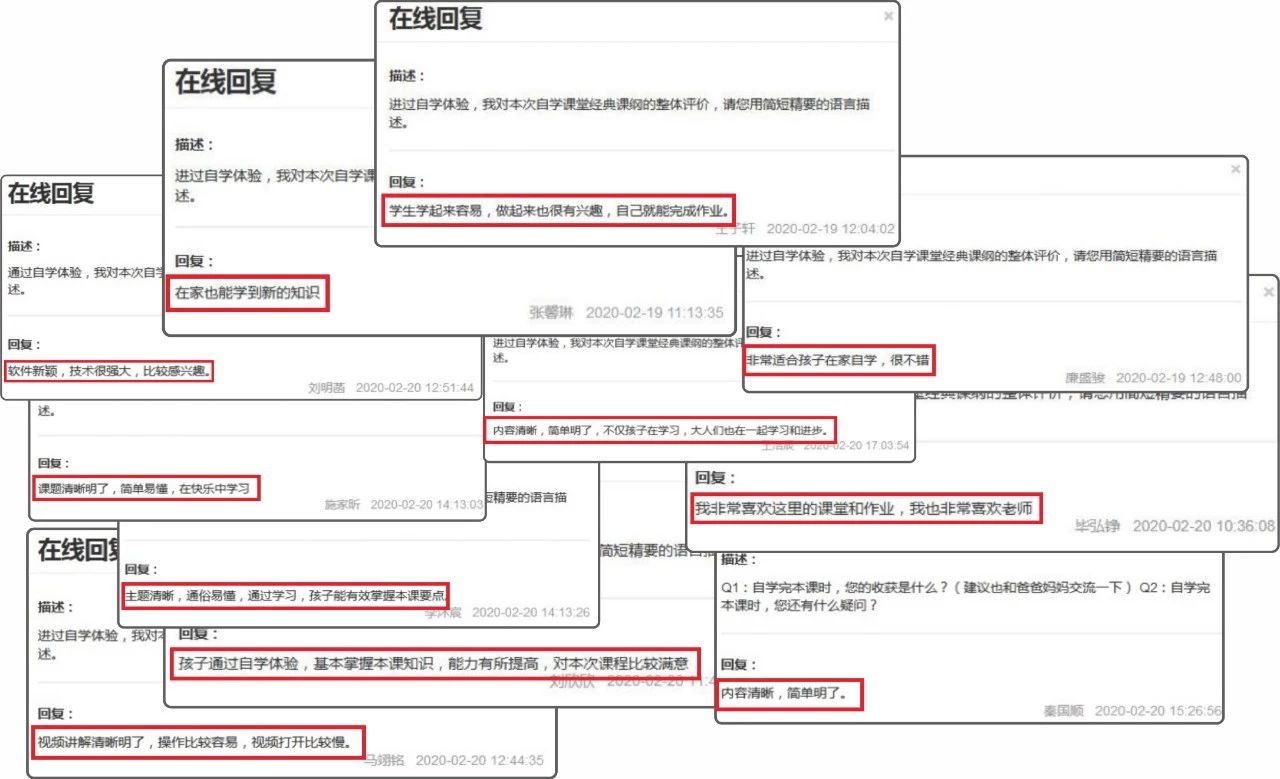 02/ 孩子在操作上都能完成,老師講課都能聽懂,非常時期作為在家學(xué)習(xí)的一種方式還是很不錯的,孩子挺愿意主動學(xué)習(xí)和完成作業(yè)。