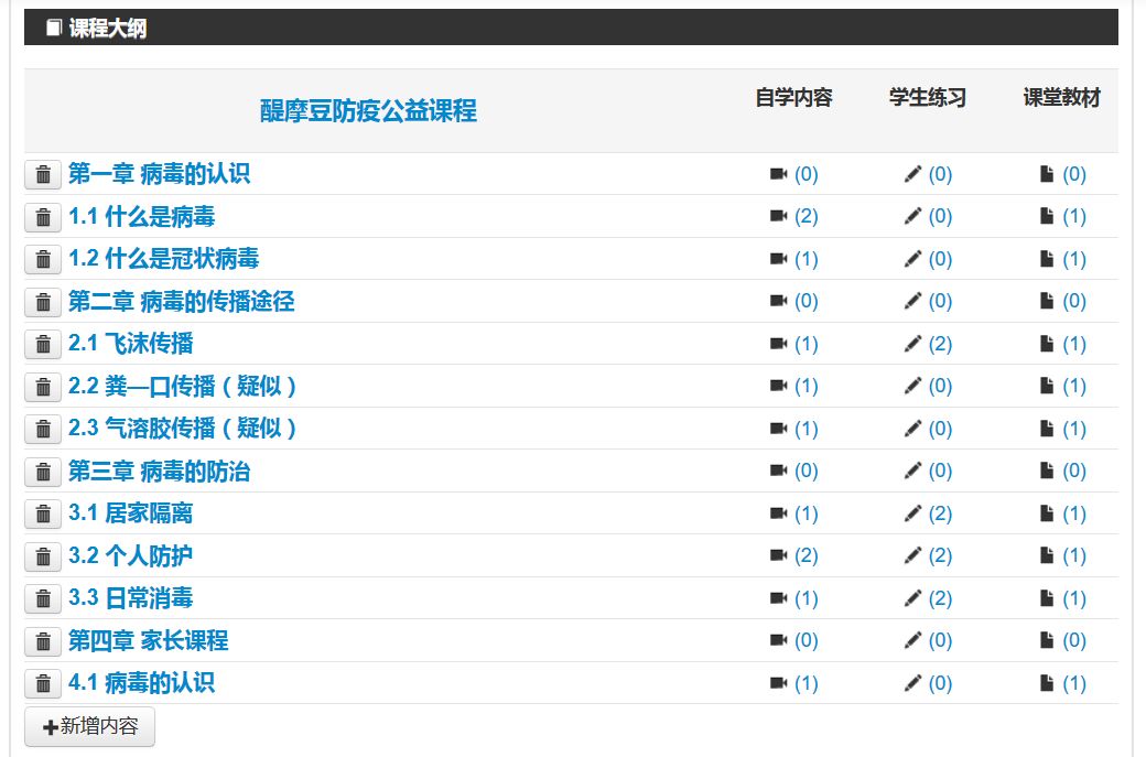 建設(shè)防疫特色課程,家庭共學(xué)習(xí) 學(xué)校還可以運用醍摩豆自學(xué)課堂建設(shè)疫情防疫特色課程,全校老師共建共享。然后發(fā)布至學(xué)生端,孩子們在家即可和家長進(jìn)行學(xué)習(xí),真正做到“預(yù)防病毒,人人有責(zé)”,將防疫知識帶給每一個家庭,每一個孩子。