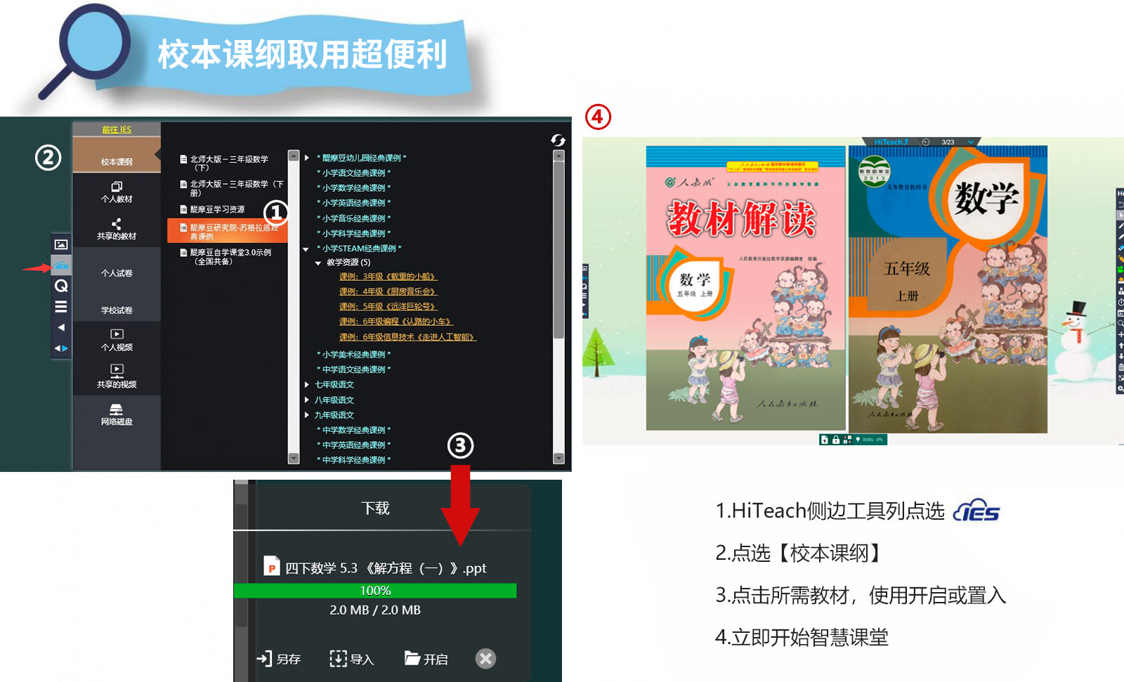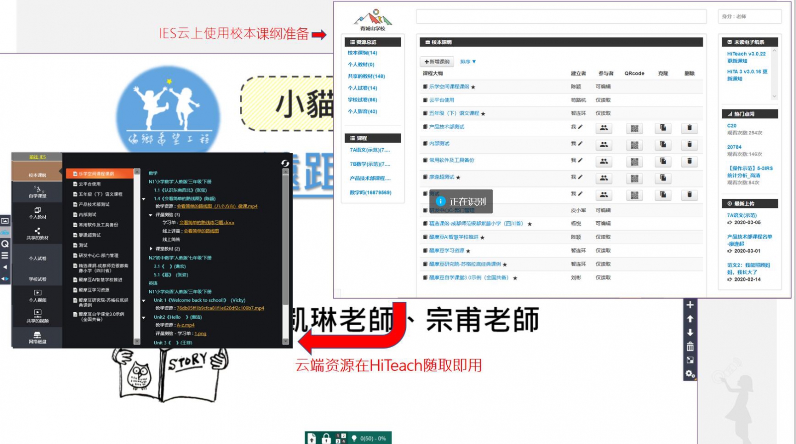 只要計(jì)算機(jī)連上網(wǎng)絡(luò),老師即可利用校本課綱功能進(jìn)行云端備課,將教學(xué)所需的HTE、PPT等教材,或者補(bǔ)充的材料、影片、網(wǎng)頁(yè)超連結(jié)等放在課綱中。在智慧教室上課時(shí),利用HiTeach智慧教學(xué)系統(tǒng)的側(cè)邊板就會(huì)顯示云端上的課綱教材,供老師在課堂上隨取即用。