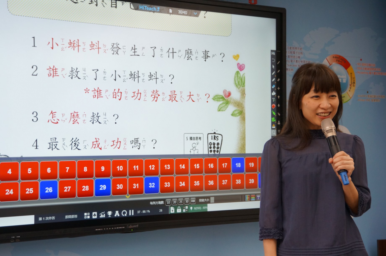 陳欣希教將二年級的聽說讀寫課程“救救小蝌蚪”透過醍摩豆遠距智慧教室的輔助,在臺北讓嘉義及屏東的小朋友透過IRS進行即時數(shù)據(jù)交互,把兩地小朋友的想法變成數(shù)據(jù)與圖表,同時借由科技輔具與異地小朋友進行交互,讓整堂課不僅充滿歡笑,更達成學習目標。一同上課的嘉義縣翁章梁縣長表示,課程非常有趣,縣長說:“這樣的遠距教學,全賜科技發(fā)達,不僅讓學習過程能更活潑,也能彼此分享教學與上課心得,遠距教學確實縮短了城鄉(xiāng)差距,希望未來嘉義縣能夠多多推廣,落實數(shù)位翻轉(zhuǎn)?!?br />