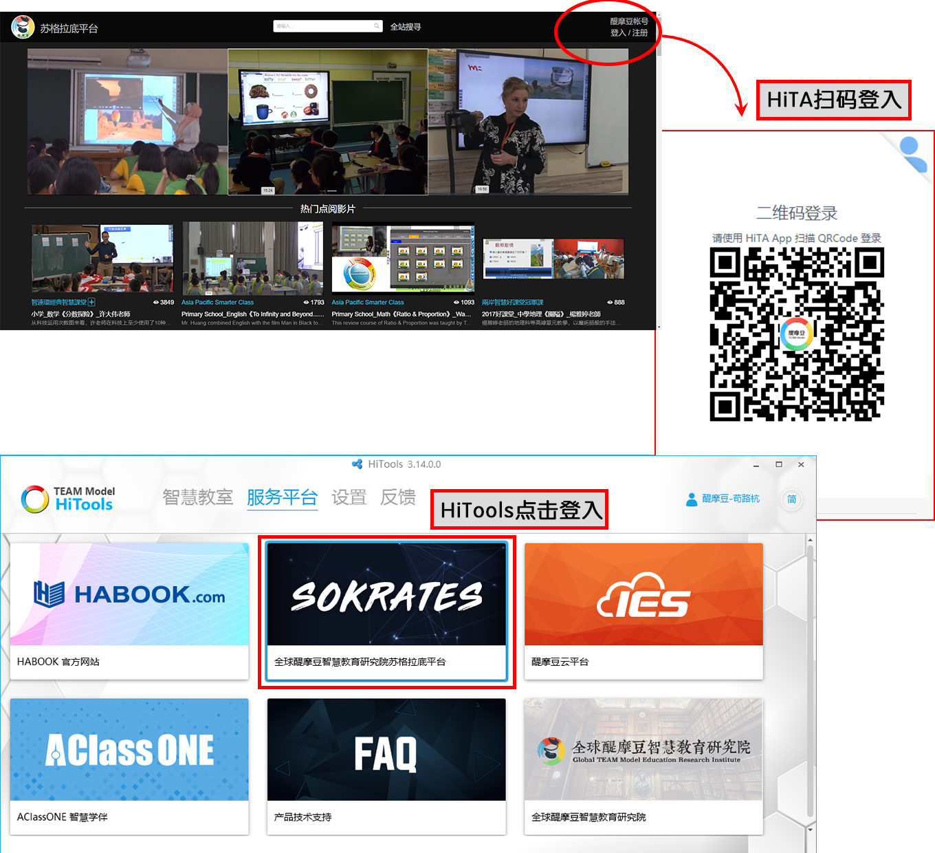 蘇格拉底平臺支援使用HiTA掃碼登入,也可從HiTools醍摩豆服務(wù)平臺選單點(diǎn)擊登入,提供使用者更多元便捷的登入方式。