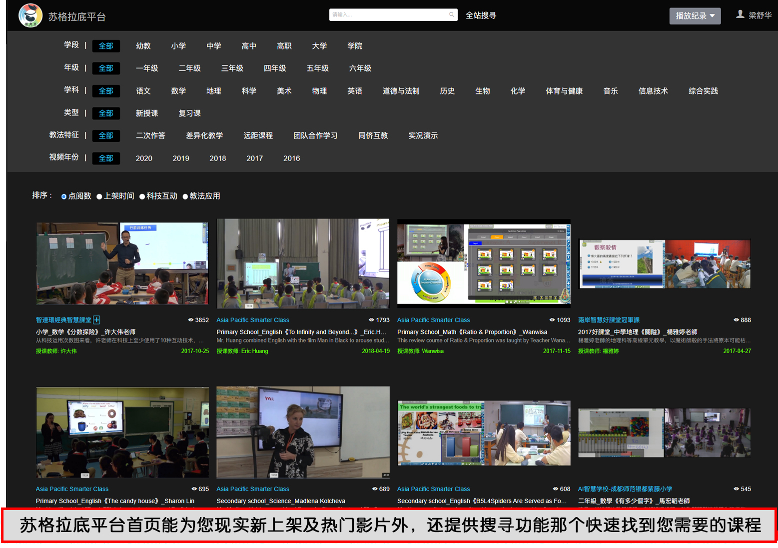 每個學(xué)校的專屬課例頻道,都會匯集在蘇格拉底平臺上,至今已經(jīng)匯集了上萬部經(jīng)典課例與教學(xué)實(shí)例影片,