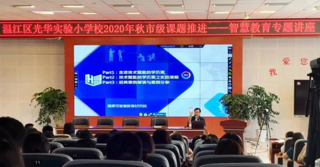 成都市溫江區(qū)光華實驗小學校 8月24日下午,成都市溫江區(qū)光華實驗小學校舉辦了“市級課題推進——智慧教育”的專題講座活動。