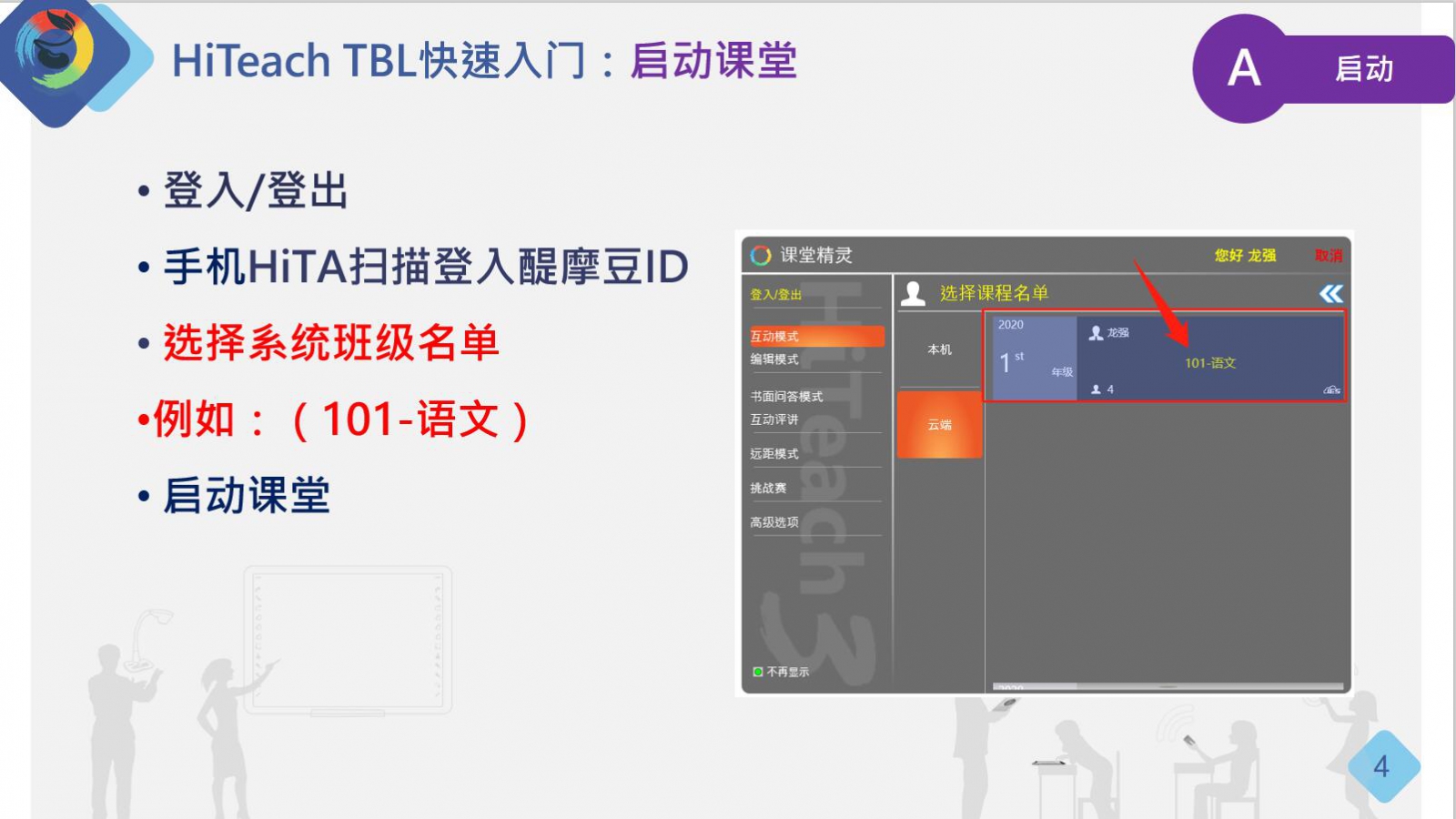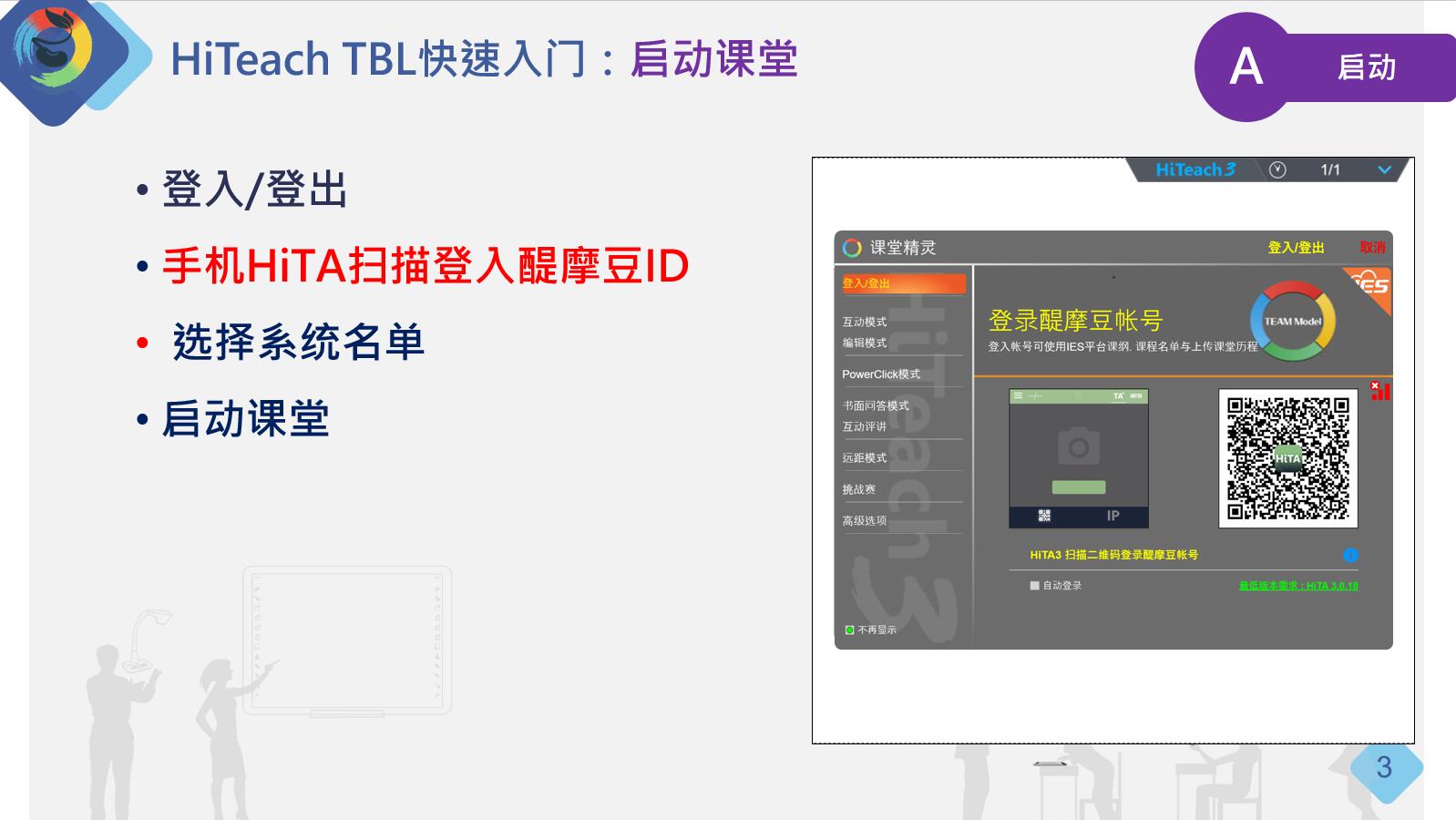 A.啟動課堂 1.登入/登出,手機(jī)HiTA掃描登入云端教室: