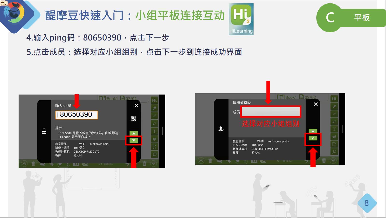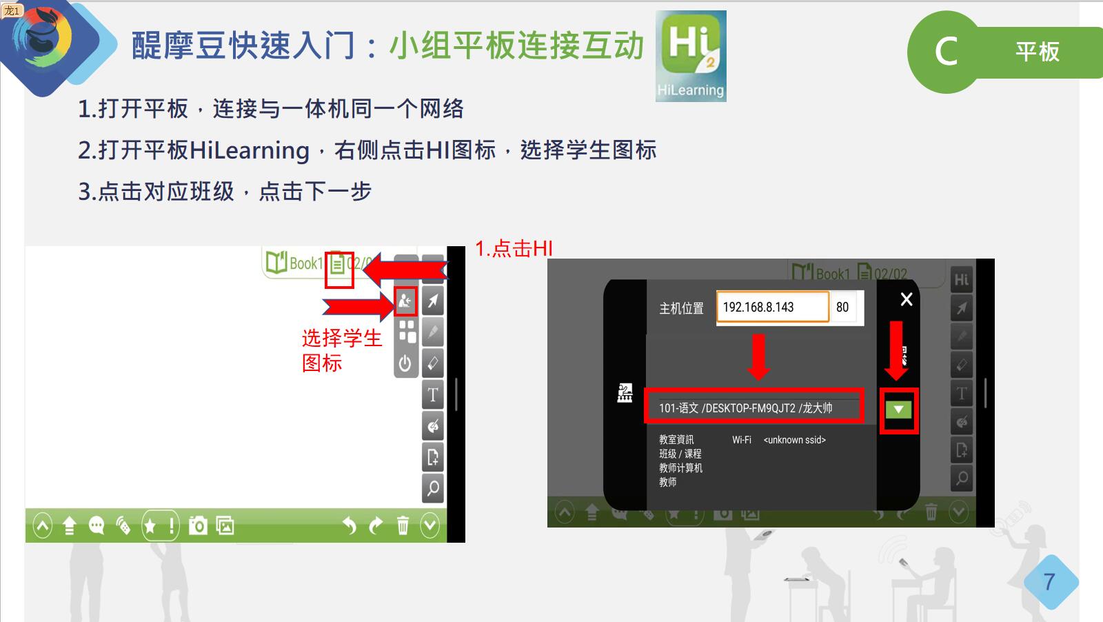 C.平板使用 1.打開平板,連接與一體機(jī)同一個網(wǎng)絡(luò)