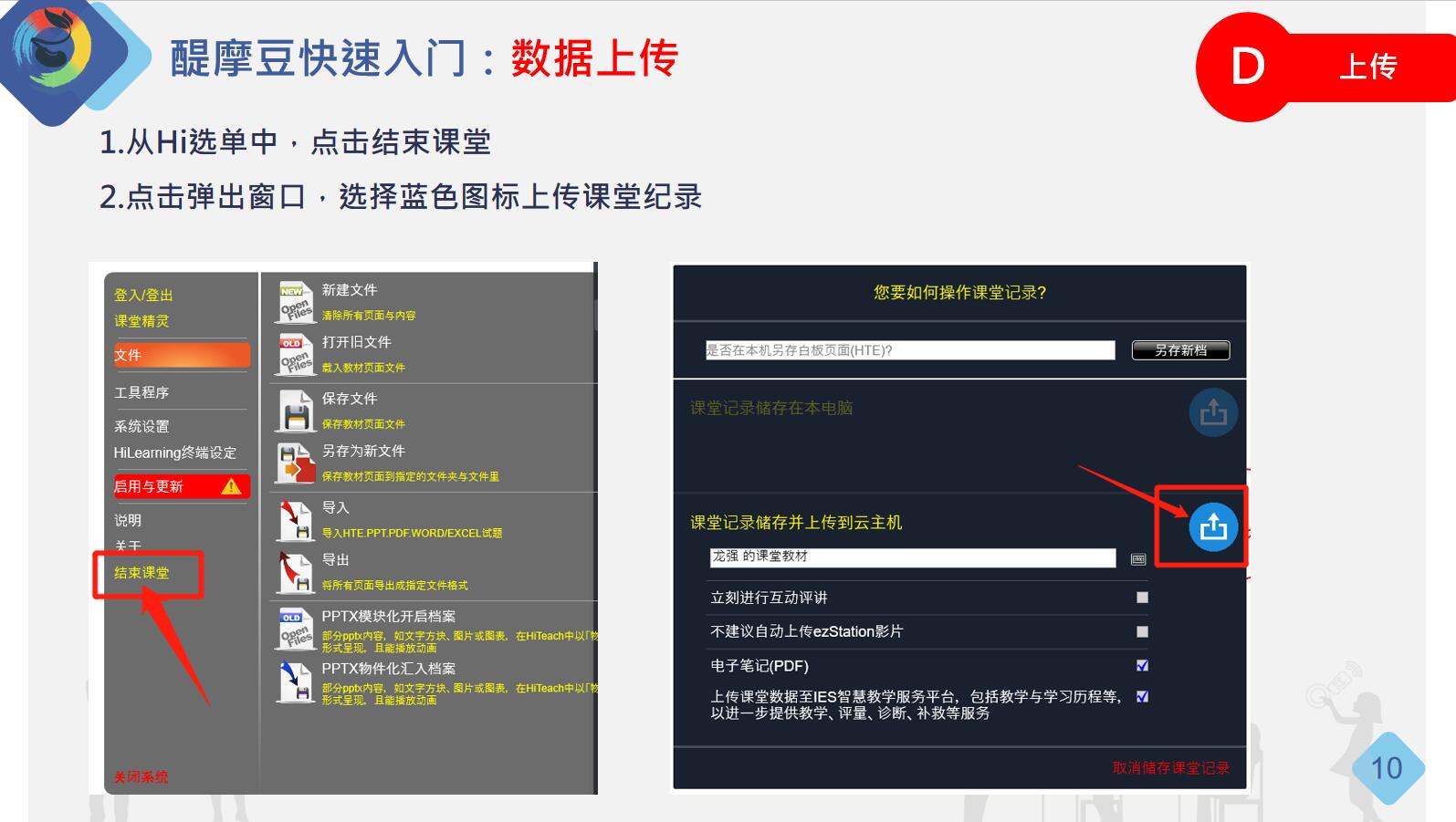 D.數(shù)據(jù)上傳 1.從Hi選單中,點擊結(jié)束課堂
