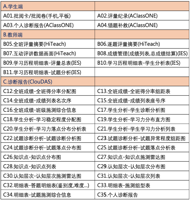 學(xué)生手機(jī)輸入答題卡,簡單操作后就能完成書面問答作業(yè),自動(dòng)產(chǎn)出大量數(shù)據(jù)分析報(bào)表和應(yīng)用服務(wù),包括學(xué)生端應(yīng)用、教師端應(yīng)用和診斷分析報(bào)告(ClouDAS)等三類,下面列出35種自動(dòng)產(chǎn)出的數(shù)據(jù)分析報(bào)表與應(yīng)用服務(wù),以便隨時(shí)檢索和應(yīng)用。