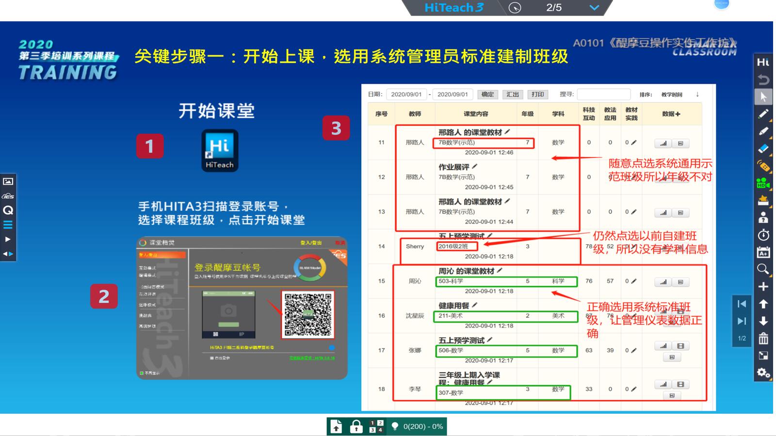 關鍵步驟一:和簡易模式一樣,開始上課,選用系統(tǒng)管理員標準建制云端班級,確保數(shù)據(jù)產(chǎn)生正確。
