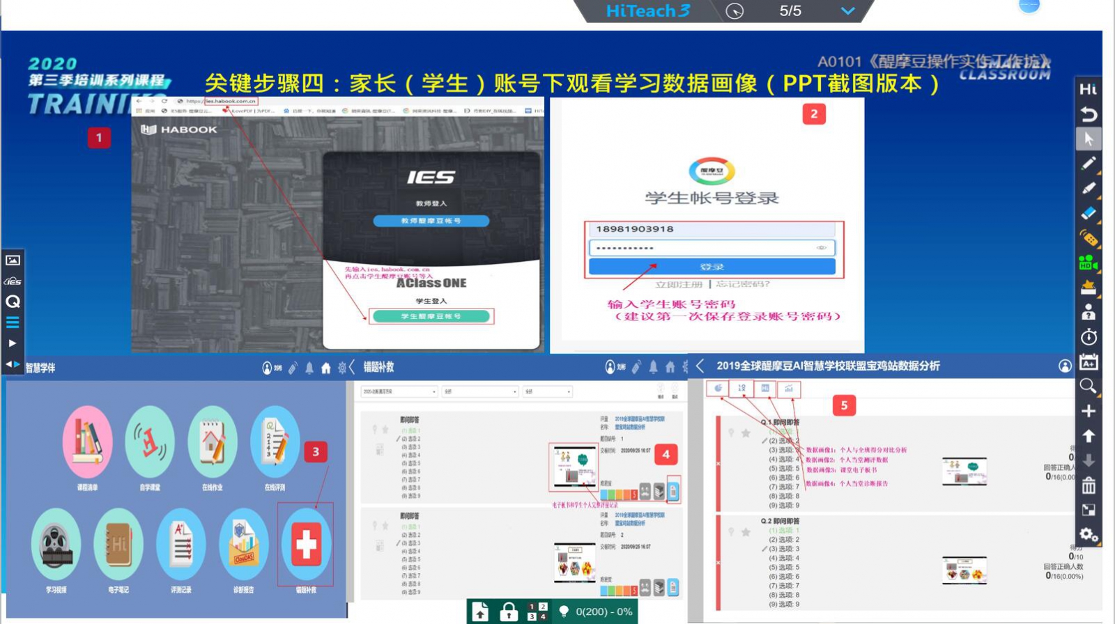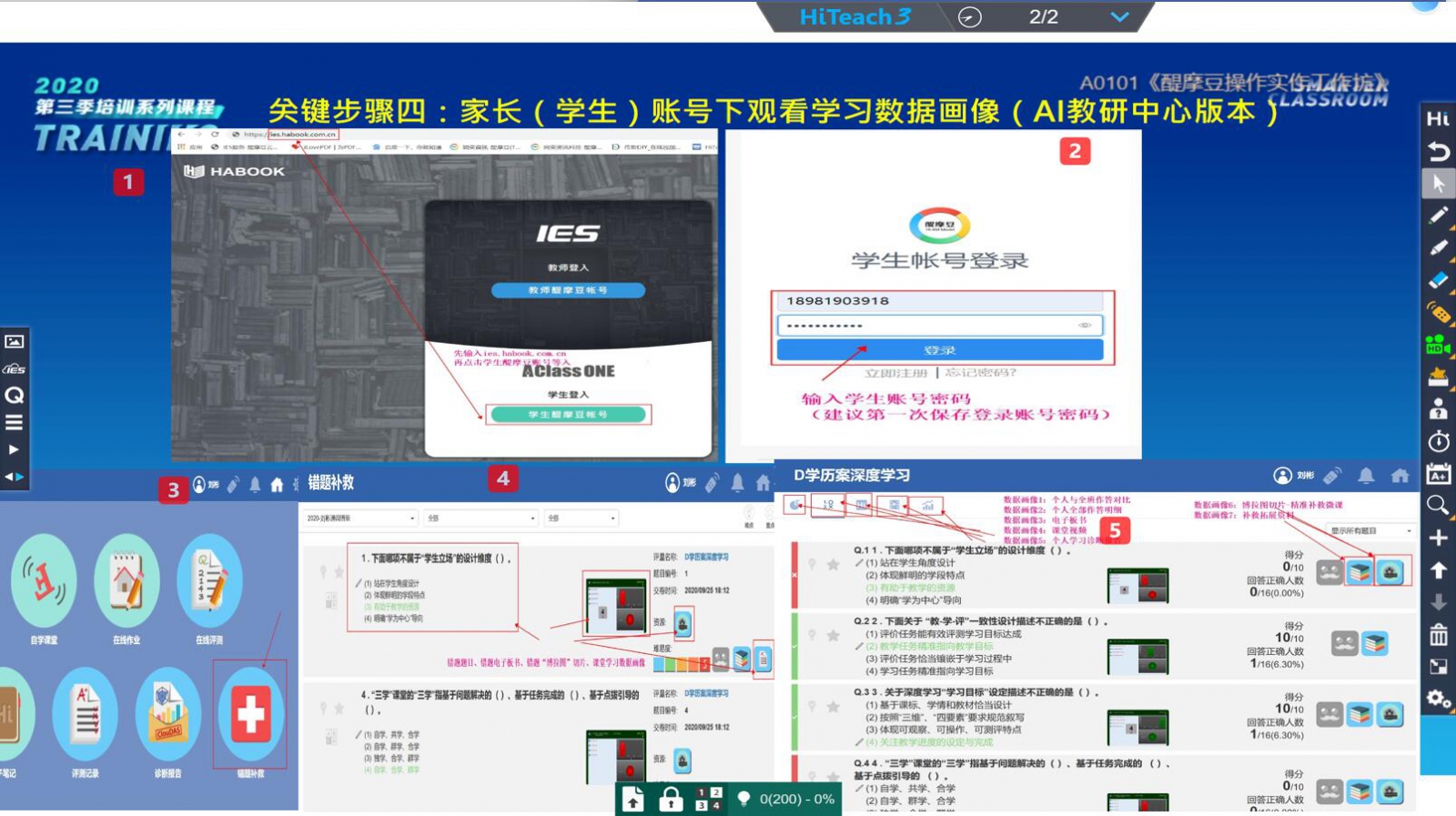 關鍵步驟四:家長或者學生登錄 ies.habook.com.cn,點擊學生賬號登入,在“錯題補救”可以看到本課錯題資源以及“個人與全班學情對比分析、本課全部測評數(shù)據(jù)、電子板書、課堂錄像、個人診斷報告、博拉圖切片、拓展補救資料”等7項學習數(shù)據(jù)畫像。