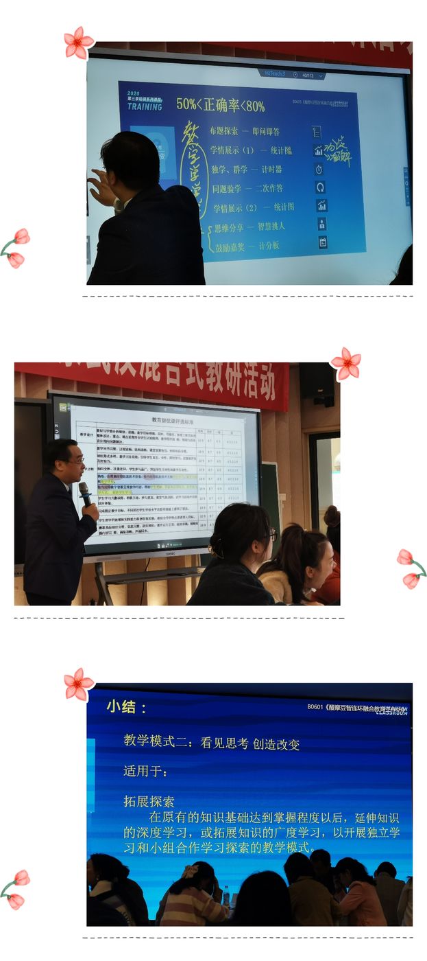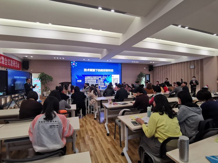 培訓主講人醍摩豆智慧教育研究院劉彬教授,與參訓教師交流了三個話題:改革最終發(fā)生在課堂上,技術(shù)如何賦能新教研之現(xiàn)場教研,以及技術(shù)如何賦能新教研之頻道教研。